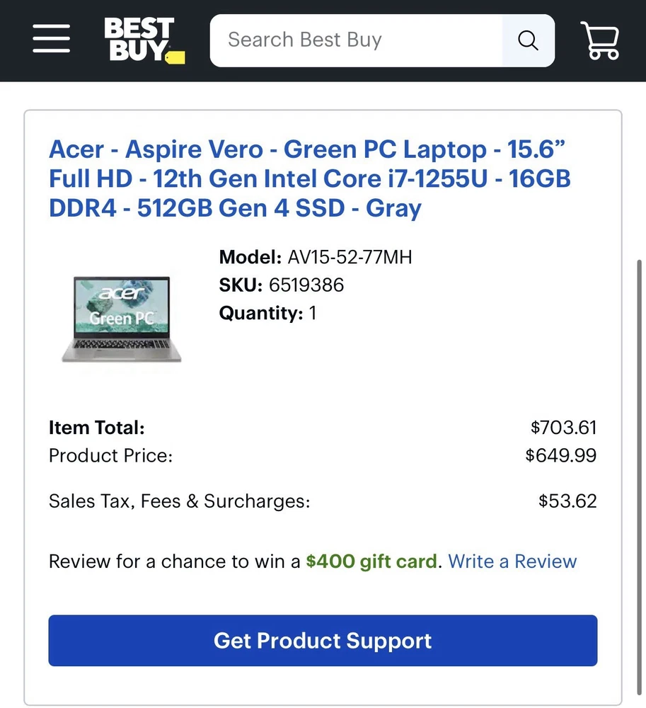 Acer - Aspire Vero Laptop - i7-1255U - 16GB DDR4 - 512GB SSD - 15.6"