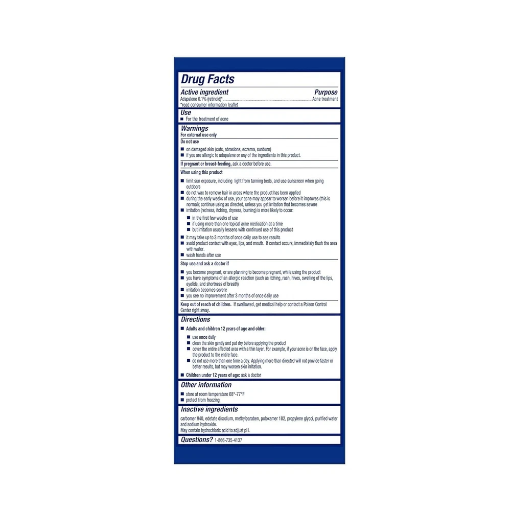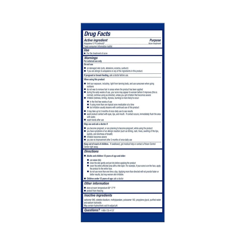 Volume: 1.06 ounces UPC: Does Not Apply Scent: Unscented gtin13: Does Not Apply Features: Unscented, Oil-Free, Alcohol-Free, Fragrance-Free, Non Comedogenic, Dermatologist Recommended Brand: Unbranded Department: Unisex Ingredients: Adapalene, Water Expiration Date: Acne Treatment Gel Formulation: Gel Active Ingredients: Adapalene Body Area: Face Main Purpose: Acne, Blemishes, Blackheads, Clogged Pores Skin Type: Sensitive Skin Set Includes: Acne Treatment Product Benefits: Anti-acne Item Form: Gel Size: 60 day supply (30g) Product Dimensions: 4 X 5 X 7 Inches; 1.06 Ounces Type: Medicated Treatment