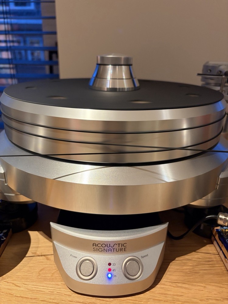 Acoustic Signature turntable set-up: STORM Mk2 turntable THREE external motors Acoustic Signature TA-2000 (carbon 3D printed) tonearm SoundSmith Zyphyr MCMI cartridge Acoustic Signature record clamp Fantastic condition. Fully boxed and with manuals. If you are reviewing this then you know about Acoustic Energy and the "Made in Germany" slogan. A truly remarkable turntable set up with two extra motors so virtually eliminating any wow / flutter. There is so much material on the internet on the strength of this model and best in class reviews. Please review and you can assess if you want this asset. Due to weight and size of the box, pick up only in Amsterdam, the Netherlands