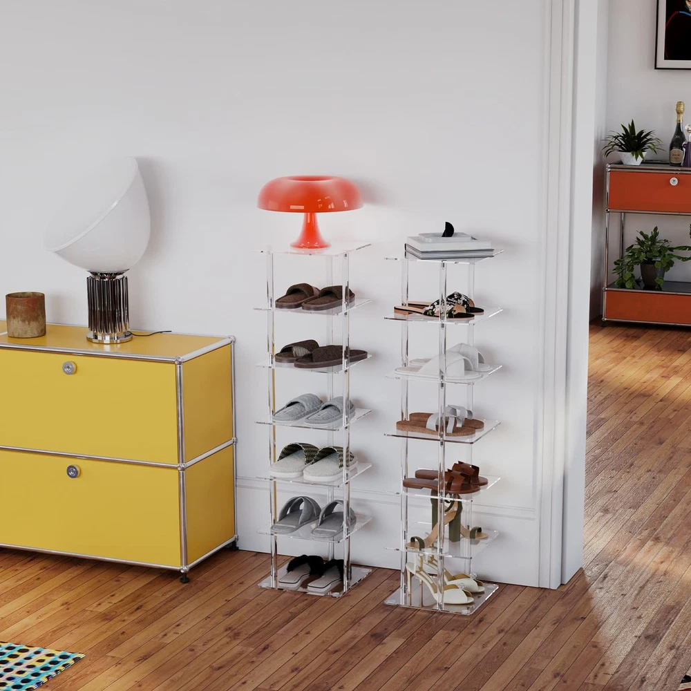This acrylic shoe rack is a game-changer! The sleek, modern design fits perfectly in tight spaces while holding up to 14 pairs. The crystal-clear acrylic looks so elegant—it keeps my shoes visible yet organized. Sturdy enough for daily use but lightweight enough to move around. No more messy piles by the door—just a clean, stylish way to display my favorite kicks! Love how it maximizes vertical space without cluttering the room.