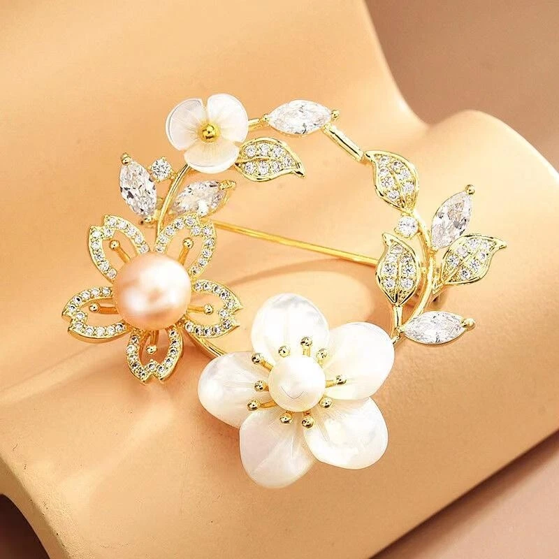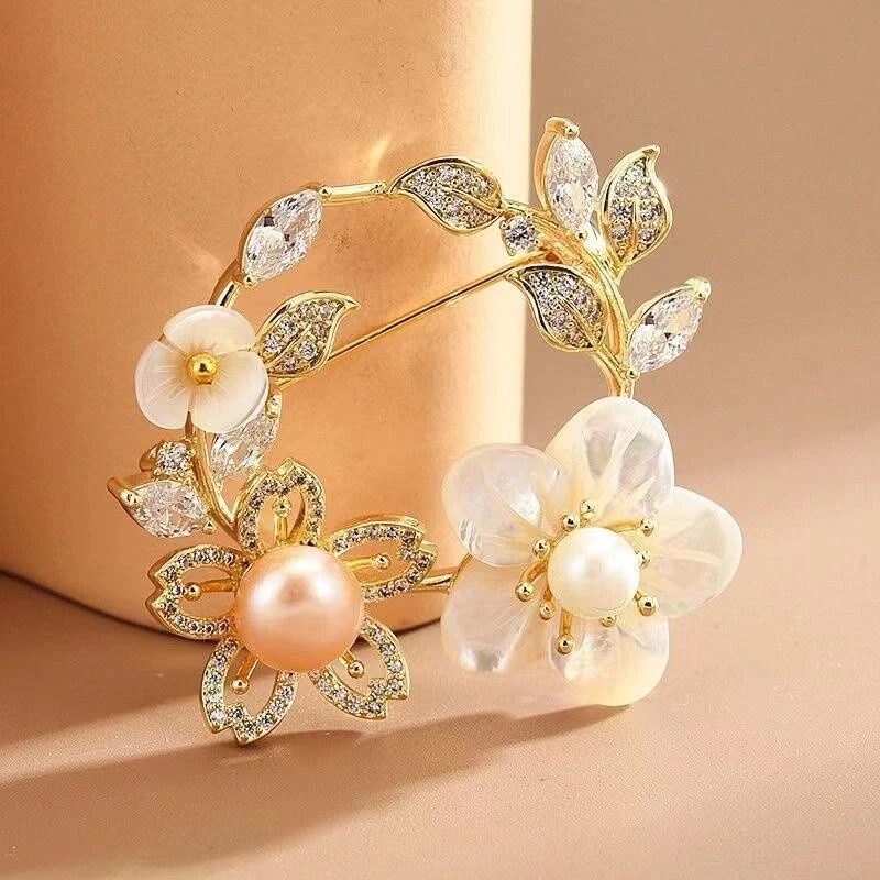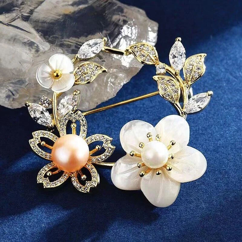 Acrylic Brooch Women's Shell Cherry Blossom Pearl Brooch Luxury Design Pin