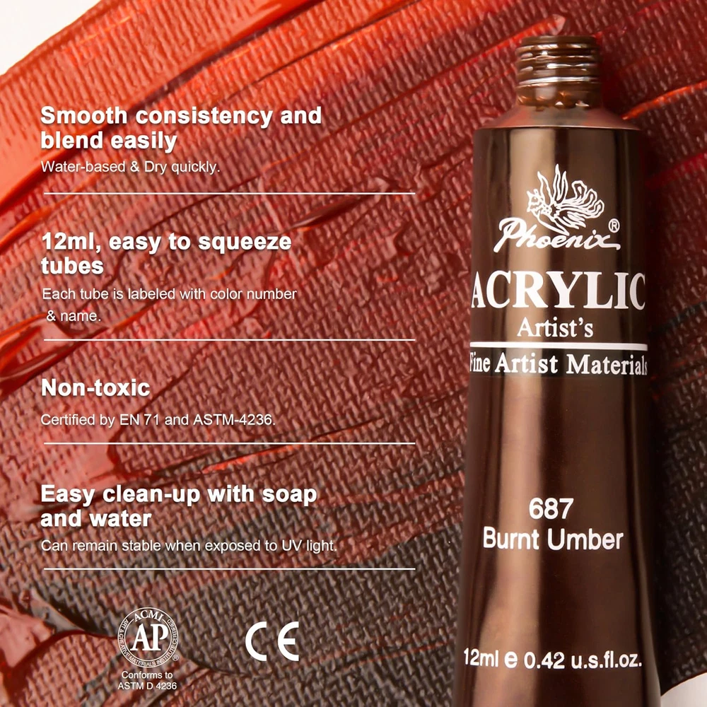 Store New Arrivals Add to Favorite View Feedback Contact Fast deliveries to the customer's home Quality customer service John Make the customers happy! Acrylic Paint Set, 24X12Ml Tubes, Non-Toxic Craft Paints for Canvas, Paper, Wood, Ceramic, Christmas Painting Art Supplies for Adults, Beginners Description 【HIGH VISCOSITY PIGMENTS】 - Unlock your creativity and bring your art projects to life with PHOENIX Acrylic Paint Set - a collection of 24 highly pigmented tubes that offer excellent coverage and smooth, buttery consistency. Whether you're a beginner, an experienced artist, or a parent looking for safe and non-toxic paints, this acrylic paint set is perfect for you. 【WATER-BASED & DRY QUICKLY】 - Our acrylic paints are water-based and dry quickly, making them suitable for various painting surfaces such as small canvas, wood, pottery, clay, rocks, paper, and more. You can achieve different textures and blending techniques with the bright and detailed colors, whether you're trying stippling, splattering, dry brushing, dabbing, or other techniques. 【NONTOXIC PAINTS】- The PHOENIX Acrylic Paint Set is EN 71 and ASTM-4236 certified, which means our paints meet the highest standards of quality and safety. You can trust our non-toxic and easy-to-wash paints to be safe for you and your family. 【PERFECT FOR ADULTS】- Our acrylic paint set is perfect for adults who want to explore their creativity and create beautiful art pieces. Whether you're an amateur or a professioal painter, our acrylic paints offer a great mix of colors, texture, and blendability. 【HIGH QUALITY PAINTS】- PHOENIX Acrylic Paint Set is perfect for anyone looking for high-quality, safe, and easy-to-use paints for their art projects. Try our acrylic paint set today and see your creativity soar! Product Description PHOENIX ACRYLIC PAINT SET Acrylic Paint for Wood High-quality pigments make excellent performance on wood. Acrylic Paint for Crafts Works for most painting surfaces such as egg, rock, miniature, clay. Acrylic Paint for Canvas Art With vibrant colors, strong tinting strength and great covering power. PHOENIX Acrylic Paint for Miniatures Easy coloring on miniatures, models, ceramics. 1 Wood Painting 2 Craft Painting 3 Canvas Painting 4 Miniatures Coloring PLEASANT PAINTING EXPERIENCE Creamy Texture Versatile acrylic colors. Easy to create different painting effects. Highly Pigmented Paint A smooth semi-gloss finish. Even secondary colors are bright and clean. BASIC PAINT SERIES Available Colors 12/24 Available Colors 12/24 Available Colors 12/24/36 Volumn 12ml/ 0.4 Fl Oz. Volumn 12ml/ 0.4 Fl Oz. Volumn 12ml/ 0.4 Fl Oz. PHOENIX Painting Canvas Add to Cart Add to Cart Add to Cart Add to Cart Add to Cart Customer Reviews 4.7 out of 5 stars 24,995 4.7 out of 5 stars 15,041 4.7 out of 5 stars 2,597 4.7 out of 5 stars 1,751 4.6 out of 5 stars 102 4.7 out of 5 stars 61 4.8 out of 5 stars 221 Price $22.99 $ 22 . 99 $16.99 $ 16 . 99 $16.99 $ 16 . 99 $8.99 $ 8 . 99 — — $25.99 $ 25 . 99 Color White White Black Black White Natural White Material Cotton — Cotton Cotton Wood Wood Cottn Shapes Rectangle & Square Rectangle & Square Rectangle & Square Rectangle & Square Rectangle Rectangle & Square Round, heart, oval, hexagon Acrylic Paint Applicable ✔ ✔ ✔ ✔ ✔ ✔ ✔ Full Sizes Available ✔ ✔ ✔ ✔ ✔ ✔ ✔ Item model number PA2412 Country of Origin Vietnam Batteries Included? No Unit Count 9.73 Fluid Ounces Batteries Required? No Finish Semi-Gloss Item Volume 9.6 Fluid Ounces Age Range (Description) for Adults & Beginners Package Information Tube Item Form Liquid Specific Uses For Product Acrylic Painting Paint Type Acrylic Manufacturer ARTS GROUP Item Package Quantity 24 Indoor/Outdoor Usage Outdoor, Indoor Item Weight 13.4 ounces Surface Recommendation painting canvas, paper, wood, rock, ceramic Special Features Non-toxic Special Feature Non-toxic Part Number PA2412 Color 24 x 0.4 Fl Oz Finish Type Semi-Gloss Is Waterproof True Product Dimensions 10.24 x 8.07 x 0.91 inches Size 0.41 Fl Oz (Pack of 24) ABOUT US We offer the best prices around on high quality products. Our E-store includes media such as books, movies, music and games while offering electronics, toys, sporting apparel, clothing, tools, general home, garden items and more. SHIPPING We are always working hard to ensure your package arrives as soon as possible. Please understand that some factors like weather, high postal traffic, and the performance of shipping companies are outside of our control. We offer free shipping to the lower 48 states and ship within 2 business days of payment, usually sooner. We do not accept P.O. Boxes. Please provide a physical address. For shipping outside of the continental USA, we only use eBay's Global Shipping Program. The item is shipped to KY and then sent to the rest of the world. International customers are responsible for all duties and taxes. Continue to 'check out' to calculate costs for shipping the item to your country. Messages regarding eBay's Global Shipping Program MUST be directed at eBay EXCLUSIVELY. RETURNS We offer a 30-Day Return Policy on items in which you are not completely satisfied with. You have the option of a full-refund or an exchange of the item. No returns are available on items shipped outside of the USA PAYMENT We accept PayPal. CONTACT US This page content is yet to come Please ad us to your favorite seller and visit again later Thank You CUSTOMER SATISFACTION We try our very best to make sure every customer is completely satisfied. If there's a problem, message us! We're happy to help. WE ACCEPT