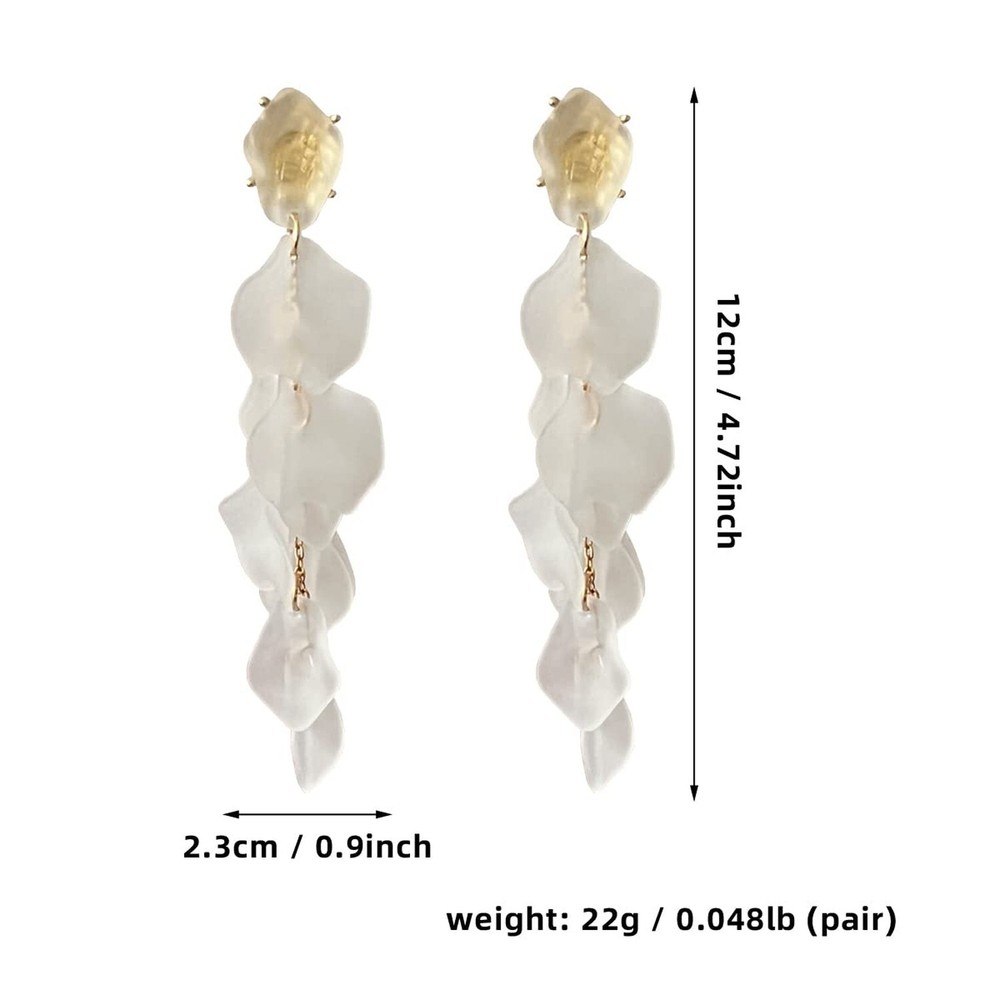 Acrylic Petal Dangle Earrings Long Drop Rose Flower Earrings for Women Fashion Boho Flowers Earrings for Party Product Details Color: Clear Brand: XYAYOU UPC: 721295446907 EAN: 0721295446907 MPN: Does not apply Department : baby-girls Date First Available : August 20, 2022 Brand, Seller, or Collection Name: XYAYOU Metal: Zinc Material: Zinc Gem Type: No Gemstone Back finding: La Pousette
