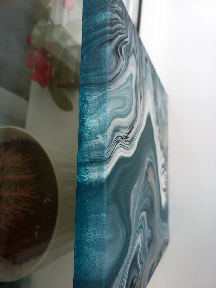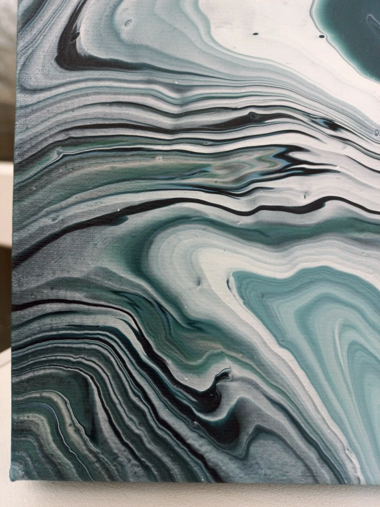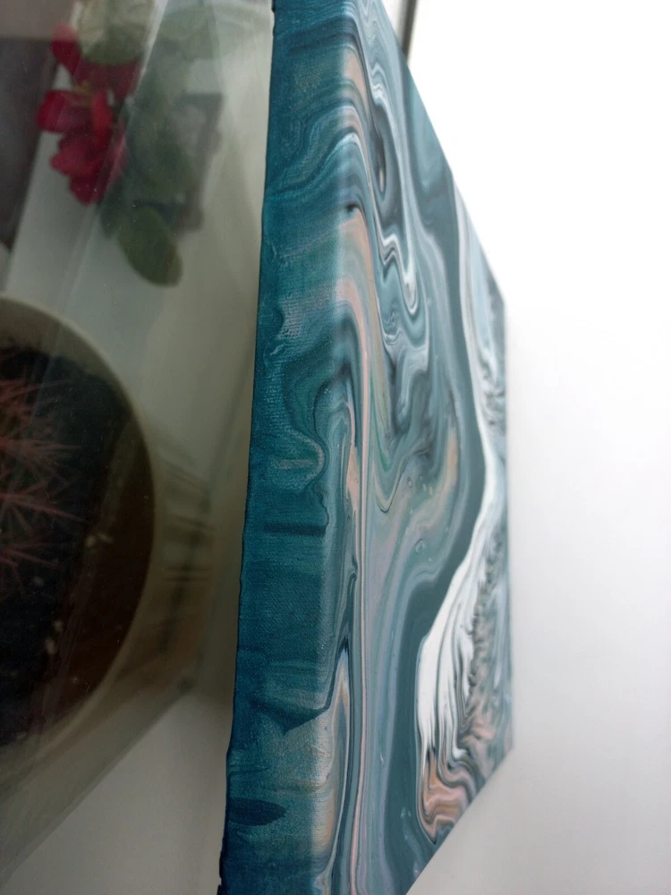 Hello art lovers! I'm excited to share my creation, a mesmerizing abstract painting titled "Flow." About the Painting: "Flow" measures 10x10 inches (25x25 cm) and is an exquisite representation of modern abstract art. This piece is crafted using the acrylic pour technique, which beautifully captures the fluidity and movement of colors. The painting features a serene color palette of turquoise, white, green, and emerald, evoking a sense of tranquility and natural beauty. The swirling patterns and dynamic composition suggest an abstract landscape, inspired by the harmonious blend of nature and artistic expression. Handmade Original: As a unique piece of art, "Flow" is an original creation that is signed by me, the artist. This artwork comes with a custom bundle, including waxed twine and 2 D-ring hanger hooks with 4 screws, making it easy to display in any space. The painting is sold unframed, giving you the flexibility to choose a frame that complements your personal style or to display it unframed for a contemporary look. Please note that the real colors of the painting may vary slightly from what you see on the screen due to individual screen settings. Ideal for: This artwork is perfect for art enthusiasts and collectors who appreciate contemporary and abstract art. Whether you're looking to enhance your home or office décor, or simply want to add a unique piece to your art collection, "Flow" offers a touch of elegance and modern flair. Its compact size makes it versatile for various display options, fitting seamlessly into any interior setting. NOTE: The colors on your device may vary slightly from the true colors of the artwork due to screen display differences.
