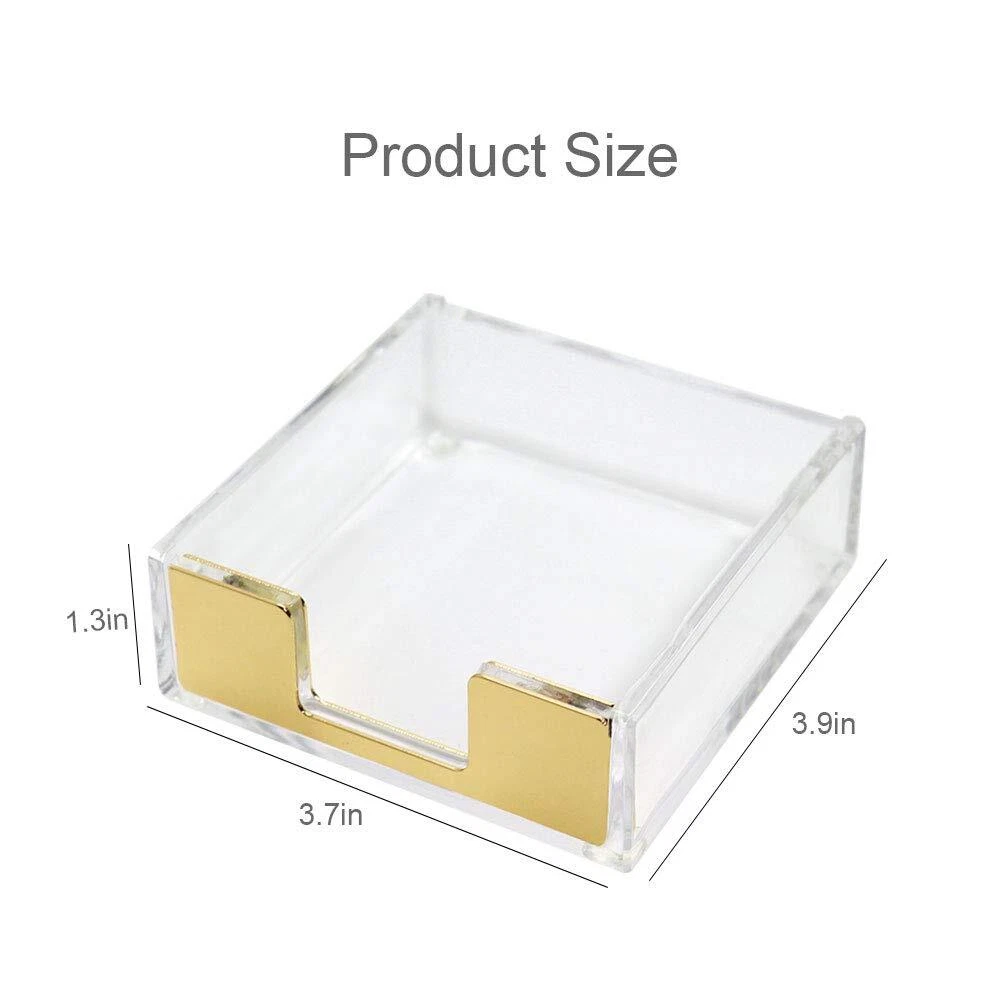 ❣Size: 3.7" L x 3.9" W x 1.3" H (95mm x 100mm x 33mm); ❣Application: desk organizer, helps personalize your desk area, sleek and professional. ❣with Notes Pad (3" x 3") ❣Minimal simplicity meets perfect suitability in a compact, gorgeous post-it notes tray. Designed to hold pop-up notes or any type of 3x3-inch post-it notes neatly organized in place! Pretty square paper never looked this cool and classy! ❣De-Clutter Your Desk❣ Sticky memos are so easy to misplace! minute they're everywhere; when you need them - they're nowhere! Give them a great-looking ''home'' that will nicely keep them together on your workspace, without the ''brick heavy'' look of cheap, robust cubes. ❣A Stylish Piece of Decor❣ Probably the best way to up-style sticky notes that come in all rainbow colors! Our transparent-style sticky note holder can keep the original color of your post-it notes well, clearly and conspicuously. Equally perfect for businessmen, teens, professionals, home desks for classrooms. ✨Modern & Stylish: This crystal clear acrylic note pad holder has a very modern and stylish design that is aesthetically pleasing and universally suitable for any room or desk décor. ✨SIZE: The outer dimensions of the note pad holder are approximately 3.95” x 3.95” x 1.75”. Any 3 x 3 inch post it notes, fun sticky notes, mini memo sheets, memo cube paper, memo cube pads or self-stick notes FIT PERFECTLY INSIDE! Just place them in it & simply pull off the notes when you need them. ✨4 anti-skidding mats on the buttom, can stay firmly on your desk or drawer, without damaging the surface. ✨Enjoy quick access to your favorite sticky notes 3x3 or paper notes. This post it tray makes them always handy when you need to leave notes to yourself or reminders to others, capture wow ideas and short to-do lists! ✨Package: 1 x Clear black/gold/rose gold/colorful tone sticky notes holder( No pads included)