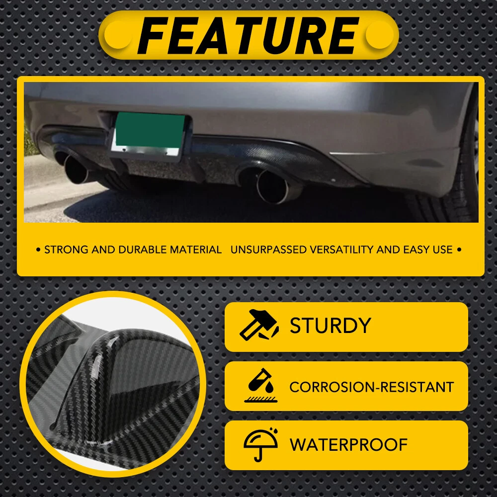 Fit for: Suitable for most cars with flat bottom of rear bumper and exhaust pipe not in the middle. If the model has an exhaust pipe on the left and right, the distance between the exhaust pipes must be greater than 84cm (33"). Specifications: Product Material: ABS Color: Carbon fiber (as pictures show) Placement on Vehicle: Lower, rear Features: 【Reduce Air Resistance】 This shark fin diffuser designed to increase a vehicle's aerodynamic performance and improve the stability of vehicle during fast driving. 【Excellent Appearance】 For Acura TLX Black Lower Rear Body Bumper Diffuser Shark Carbon Wing Spoiler Q Fit for: Suitable for most cars with flat bottom of rear bumper and exhaust pipe not in the middle. If the model has an exhaust pipe on the left and right, the distance between the exhaust pipes must be greater than 84cm (33"). Specifications: Product Material: ABS Color: Carbon fiber (as pictures show) Placement on Vehicle: Lower, rear Features: 【Reduce Air Resistance】 This shark fin diffuser designed to increase a vehicle's aerodynamic performance and improve the stability of vehicle during fast driving. 【Excellent Appearance】 Shark fin and clean lines design with beautiful appearance to decorate your car, which gives your vehicle a more aggressive racing look. 【ABS Material】 Made of ABS material with high-quality, waterproof, durable functions and will not easy to break. 【Universal Fit】 Universal fit for most cars, please measure the size before purchasing. Note: Please confirm the size and make sure that there is enough space to install before purchasing!!! Professional installation is required. Packaging Include: 1 x Rear Shark Fin Bumper Diffuser 1 x Screws kit 1 x Double sided adhesive tape Item Specifics Brand AUXITO Manufacturer Part Number RLB-33IN-TXW Placement on Vehicle Rear Lower Material ABS Plastic Color Carbon Fiber Look Surface Finish Carbon Fiber Type Rear Lower Bumper Diffuser Fitment Type Direct Replacement Warranty 1 Year Other Part Number Universal Lower Rear Body Bumper Lip Diffuser Shark Mounting Hardware Included Yes Attachment Method Screws Payment Returns DESCRIPTION PAYMENT SHIPPING RETURN POLICY CONTACT US Shop Category Store Home LED Headlight ◈ H13 LED Reverse Light ◈ T15/921/W16W LED Side Marker Light Car Parts & Accessories Tail Light assemblies Other Hot Item Picture New List Item 6X 31MM-36MM LED Interior License Light Plate Super Festoon White Bulbs Q USD 17.09 6PCS AUXITO Festoon 31MM-36MM DE3175 DE3022 Map LED Dome Bulb Light 6500K Q USD 17.09 36MM DE3423 DE3425 LED Interior Door Dome Map Courtesy Marker Light White Q USD 17.09 6PC AUXITO Festoon 31MM DE3175 DE3022 Map LED Dome Bulb Light Bright White Q USD 17.09 AUXITO 31MM Festoon LED Interior Map Light Bulb 6500K White DE3425 DE3021 2X Q USD 17.09 Help & Info Payment Policy Shipping Policy Return Policy FAQ About Us For Acura TLX Black Lower Rear Body Bumper Diffuser Shark Carbon Wing Spoiler Q Fit for: Suitable for most cars with flat bottom of rear bumper and exhaust pipe not in the middle. If the model has an exhaust pipe on the left and right, the distance between the exhaust pipes must be greater than 84cm (33"). Specifications: Product Material: ABS Color: Carbon fiber (as pictures show) Placement on Vehicle: Lower, rear Features: 【Reduce Air Resistance】 This shark fin diffuser designed to increase a vehicle's aerodynamic performance and improve the stability of vehicle during fast driving. 【Excellent Appearance】 Shark fin and clean lines design with beautiful appearance to decorate your car, which gives your vehicle a more aggressive racing look. 【ABS Material】 Made of ABS material with high-quality, waterproof, durable functions and will not easy to break. 【Universal Fit】 Universal fit for most cars, please measure the size before purchasing. Note: Please confirm the size and make sure that there is enough space to install before purchasing!!! Professional installation is required. Packaging Include: 1 x Rear Shark Fin Bumper Diffuser 1 x Screws kit 1 x Double sided adhesive tape Payment Returns All rights reserved. On Mar 20, 2025 at 09:02:09 PDT, seller added the following information: