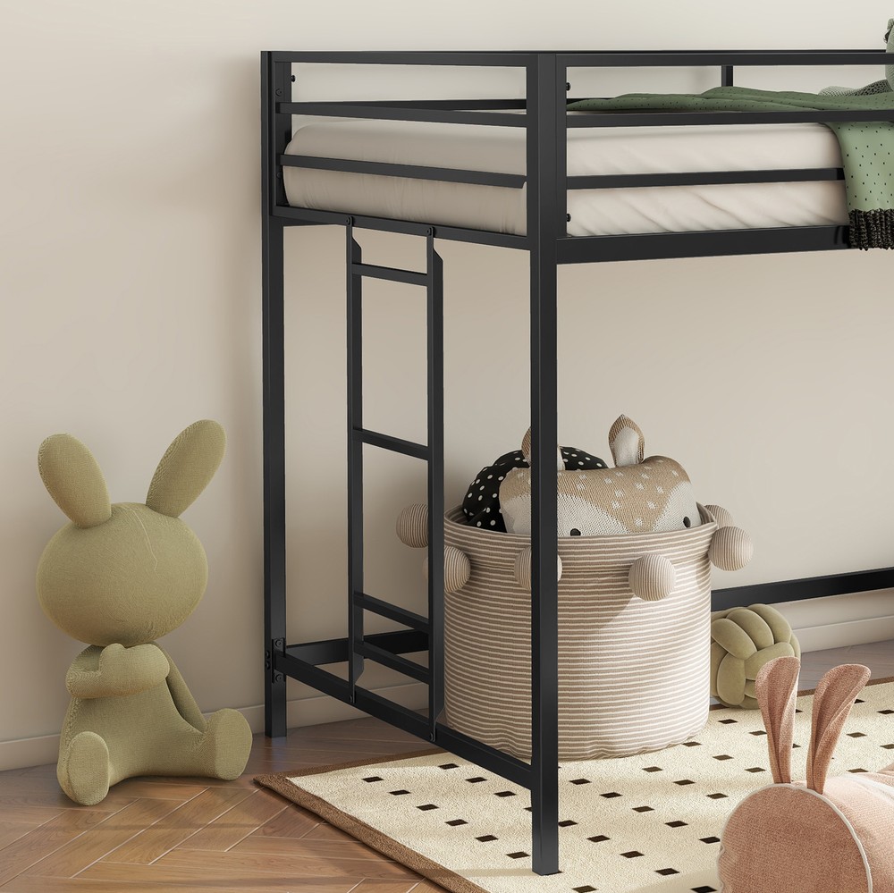[No Box Spring Needed]: This metal twin loft bunk bed features timeless styling that will last for years. There is no need for a box spring as the 22pcs sturdy metal slats, which provide strong support and can effectively prevent the mattress from sagging. [Easy Installation]: Two-person installation around 1 hour is recommended. [Mattress Suggestion]: For your safety, use only mattress which are 74"-75" long and 37.5"-38.5" wide on the bed. Ensure the thickness of mattress does not exceed 6". Surface of mattress must be at least 5"(127 mm) below the upper edge of guardrails. For your comfort, we suggest a minimum mattress thickness of 4". Brand Unbranded Type Bed frame UPC Does not apply Compatible Mattress Size Does not apply Colo... Adam sturdy junior twin loft bed black for kids, space saving, Loft Bed with easy climbing Ladder and Guardrails, Loft Bed Frame for Bedroom [No Box Spring Needed]: This metal twin loft bunk bed features timeless styling that will last for years. There is no need for a box spring as the 22pcs sturdy metal slats, which provide strong support and can effectively prevent the mattress from sagging. [Easy Installation]: Two-person installation around 1 hour is recommended. [Mattress Suggestion]: For your safety, use only mattress which are 74"-75" long and 37.5"-38.5" wide on the bed. Ensure the thickness of mattress does not exceed 6". Surface of mattress must be at least 5"(127 mm) below the upper edge of guardrails. For your comfort, we suggest a minimum mattress thickness of 4". Guard rail Full Length guardrails for safety. Metal frame and Slats Easy to assemble metal slats with plastic locking tabs. Protective Post Caps Plastic end caps protect floors and prevent squeaks. Assembly Tool Included Convenient tool allows you to complete the assembly quickly and easily. [Classic Square Metal Bunk Bed Frame]: Junior twin loft metal bunk beds with classic and space-saving design add a touch of elegance to your bedroom. Suitable for any living environment, such as children's bedrooms, universities, residential treatment facilities and sheds. Perfect metal bunk beds for kids, teens, girls, boys, adults. [More Storage Space]: Higher junior loft bed than most of Junior loft bed in the market, with more storage space under the bed. [Anti-Noise]: The plastic buckle design can fix the slats firmly to prevent the noise from moving slats, ensuring an immersive sleep experience. [Durable Square Tube Frame]: The sturdy square tube frame provides maximum support with a total weight capacity 350lbs, ensuring safety and stability for a good sleep. [Safety Design]: The junior loft bunk has highly reinforced guardrails to prevent your child from falling. A convenient ladder with comfortable steps makes it easy for children to climb up and down. More than that, this bunk bed has passed several Children’s Product Certificate (CPC) tests and keep your kids away from accidentally harm. Item Specifics Brand Unbranded Type Bed frame Color Black Frame Material Metal Payment [ Policy: The above tab label style can be modified in left Basic - Footer Policy section. And this area is the details contents of your policies. You can add a banner for this policy as header and add text descriptions here. The text descriptions can be different Font Size, Font Color, Style and even graphics and icons are also accepted. ] Shipping [ Shipping: This is the contents of your Shipping. You can add a banner for this Shipping as header and add text descriptions here. The text descriptions can be different Font Size, Font Color, Style and even graphics and icons are also accepted. ] Returns [ Return: This is the contents of your Return. You can add a banner for this Return as header and add text descriptions here. The text descriptions can be different Font Size, Font Color, Style and even graphics and icons are also accepted. ] Contact Us [ Contact Us: This is the contents of your Contact Us. You can add a banner for this Contact Us as header and add text descriptions here. The text descriptions can be different Font Size, Font Color, Style and even graphics and icons are also accepted. ] DESCRIPTION PAYMENT SHIPPING RETURN POLICY CONTACT US Adam sturdy junior twin loft bed black for kids, space saving, Loft Bed with easy climbing Ladder and Guardrails, Loft Bed Frame for Bedroom [No Box Spring Needed]: This metal twin loft bunk bed features timeless styling that will last for years. There is no need for a box spring as the 22pcs sturdy metal slats, which provide strong support and can effectively prevent the mattress from sagging. [Easy Installation]: Two-person installation around 1 hour is recommended. [Mattress Suggestion]: For your safety, use only mattress which are 74"-75" long and 37.5"-38.5" wide on the bed. Ensure the thickness of mattress does not exceed 6". Surface of mattress must be at least 5"(127 mm) below the upper edge of guardrails. For your comfort, we suggest a minimum mattress thickness of 4". Guard rail Full Length guardrails for safety. Metal frame and Slats Easy to assemble metal slats with plastic locking tabs. Protective Post Caps Plastic end caps protect floors and prevent squeaks. Assembly Tool Included Convenient tool allows you to complete the assembly quickly and easily. [Classic Square Metal Bunk Bed Frame]: Junior twin loft metal bunk beds with classic and space-saving design add a touch of elegance to your bedroom. Suitable for any living environment, such as children's bedrooms, universities, residential treatment facilities and sheds. Perfect metal bunk beds for kids, teens, girls, boys, adults. [More Storage Space]: Higher junior loft bed than most of Junior loft bed in the market, with more storage space under the bed. [Anti-Noise]: The plastic buckle design can fix the slats firmly to prevent the noise from moving slats, ensuring an immersive sleep experience. [Durable Square Tube Frame]: The sturdy square tube frame provides maximum support with a total weight c