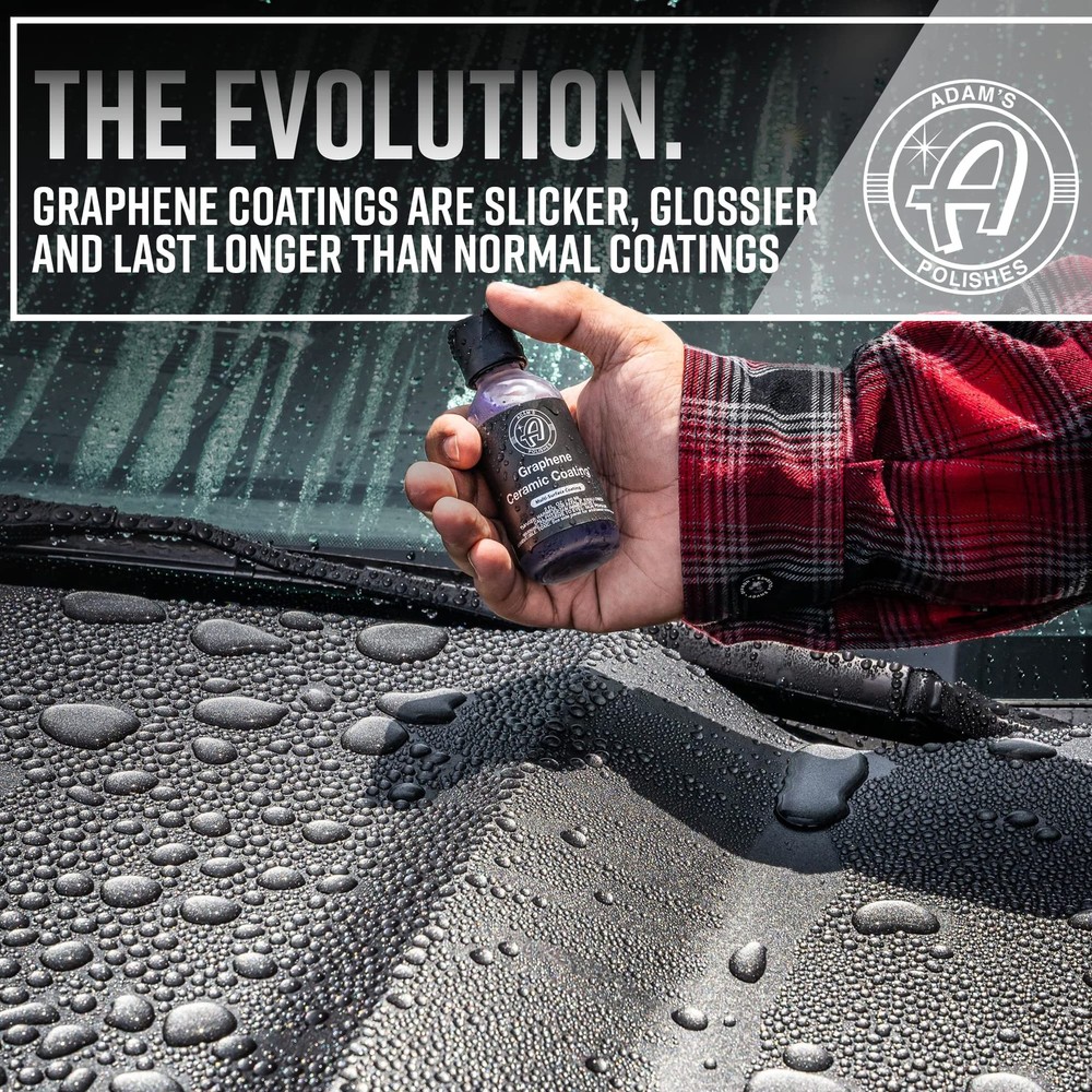 Adam’s Graphene Ceramic Coating Advanced is an easy-to-use Ceramic Coating that can be seen where applied using the Adam’s UV Flashlight and our patent-pending UV Tracer Technology. With improved characteristics, this coating is appropriate to add long-lasting, extreme self-cleaning effects for single-stage and clear-coated, painted surfaces, glass, plastic trim, polycarbonate, rubber moulding, and wheels with a single bottle.