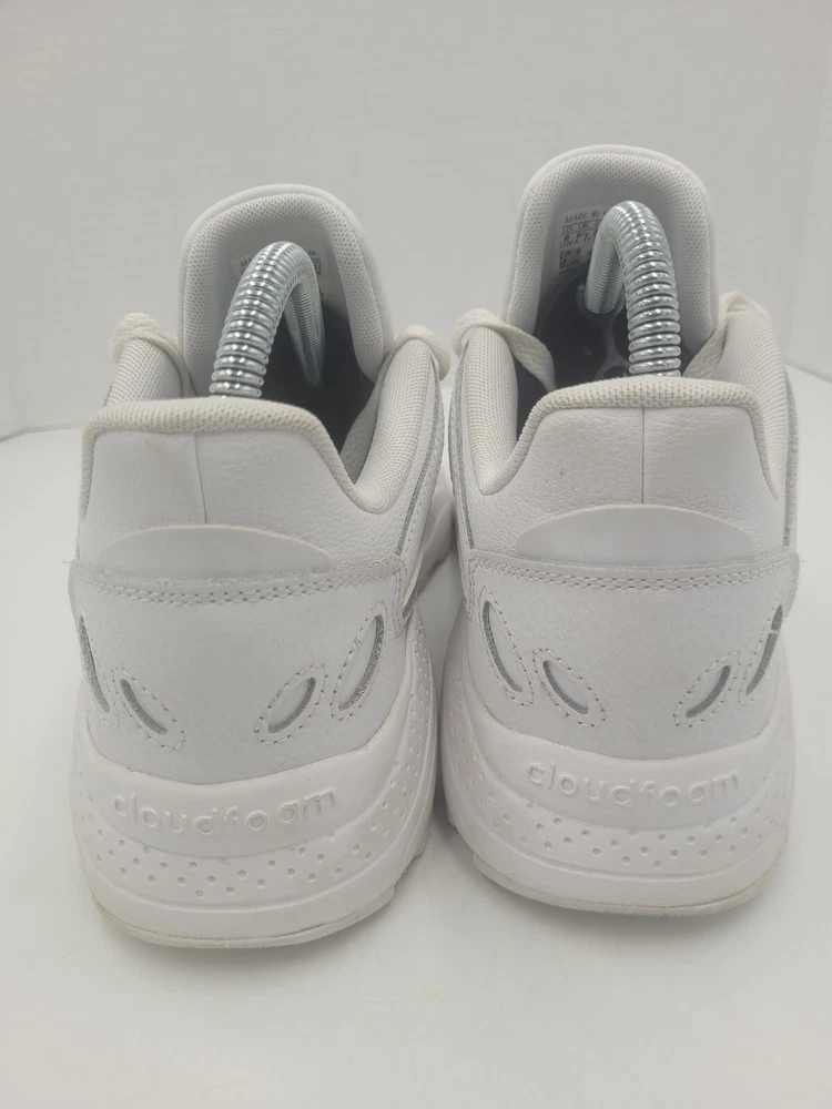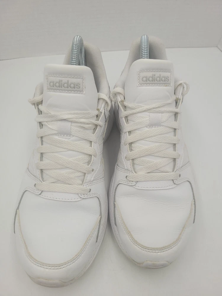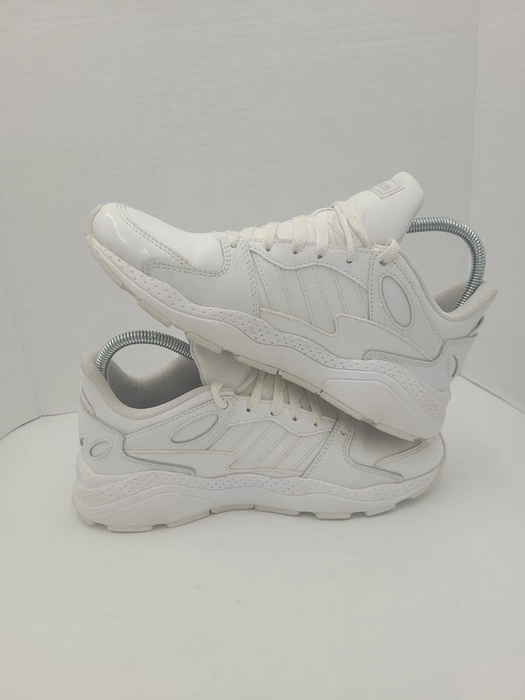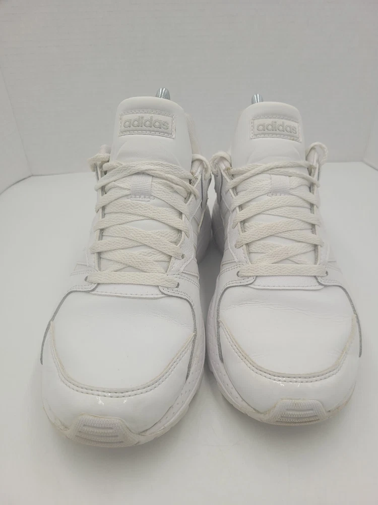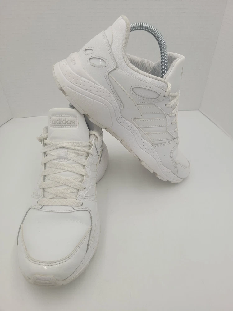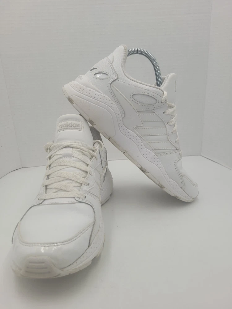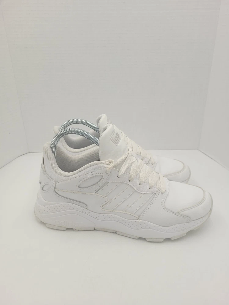 Step up your game with these Adidas Neo Chaos sneakers. Featuring a sleek white leather upper and a low top style, these shoes are perfect for any occasion. The shoe's rubber outsole provides durability and traction, while the foam insole ensures comfort and arch support. With features such as adjustable lace-up closure, breathability, and lightweight design, these sneakers are perfect for gym training, cross-training, or just a casual day out. The shoes are available in US size 8 and UK size 6.5, and come in a solid white color with a cap toe design. Get ready to go out in style with these Adidas Neo Chaos sneakers. P