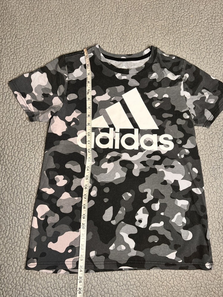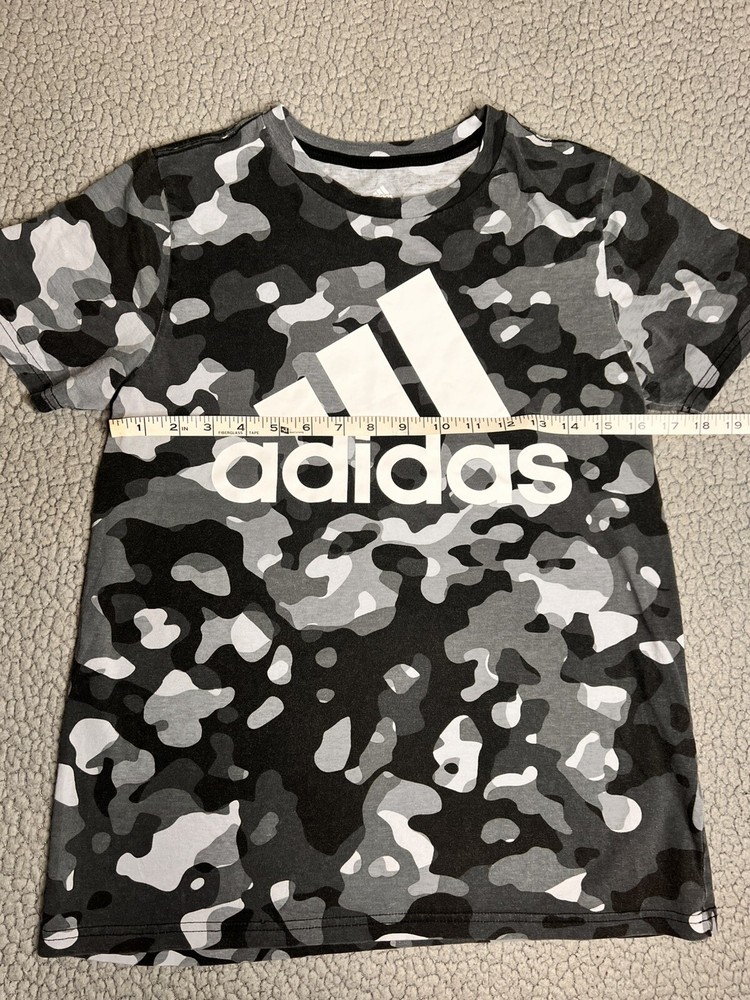 Adidas Core Camo Print T Shirt Gray And Black Boys Size Large good condition measurements are in photos SKU(A165)