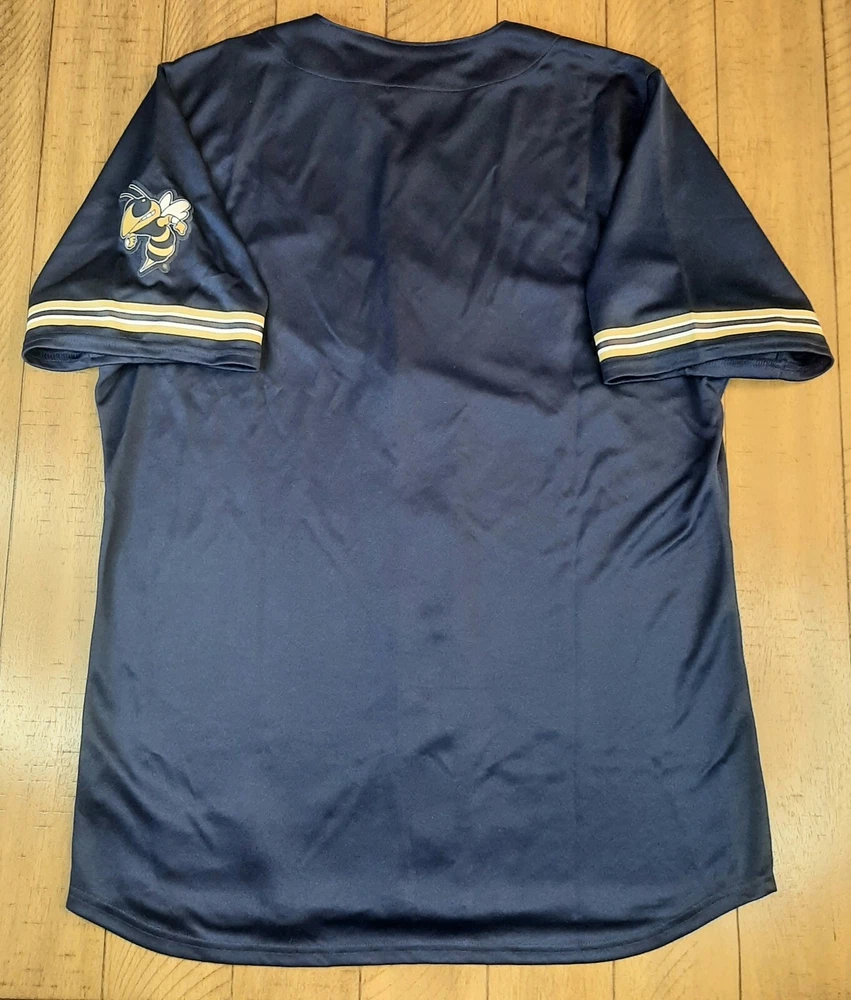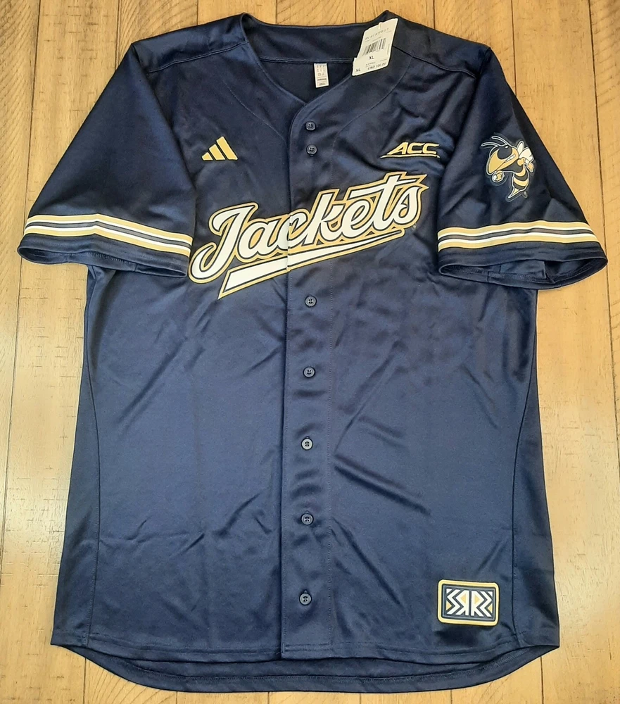 Show your support for the Georgia Tech Yellow Jackets with this officially licensed Adidas baseball jersey. The blue jersey features the team logo and is made from high-quality materials for comfort and durability. It's perfect for fans of all ages and is available in size XL. Whether you're watching the game at home or at the stadium, this jersey is a must-have for any true fan. It's made in Honduras and is perfect for both men and women. Get yours today and show your support for the Georgia Tech Yellow Jackets!