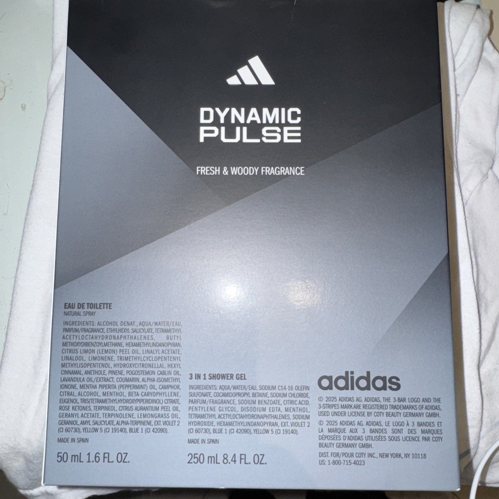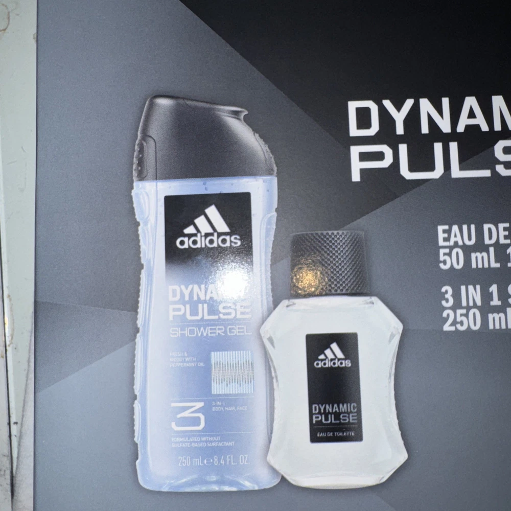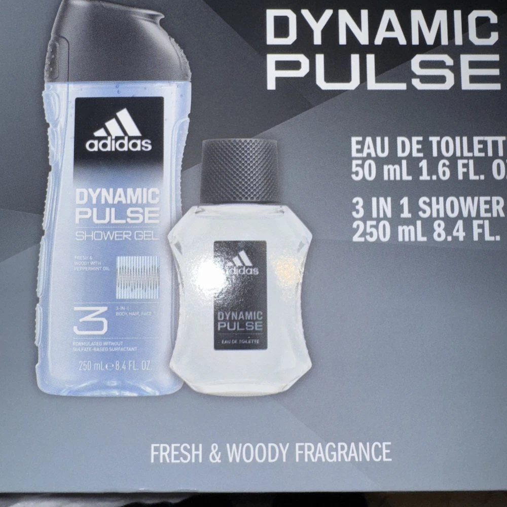 Set Includes: Eau De Toilette, 3- in- 1 Shower Gel, $3 Voucher for Full Size Cologne Type: 2- Piece Eau de Toilette & Shower Gel Gift Set Product Line: Addidas Dynamic Pulse Size: Regular Features: Cool & Aquatic Fragrance, Vegan Formula, Suitable For Sensitive Skin, Plastic Free Gift Box Brand: Adidas Department: Men Scent: Dynamic Pulse Color: Gray