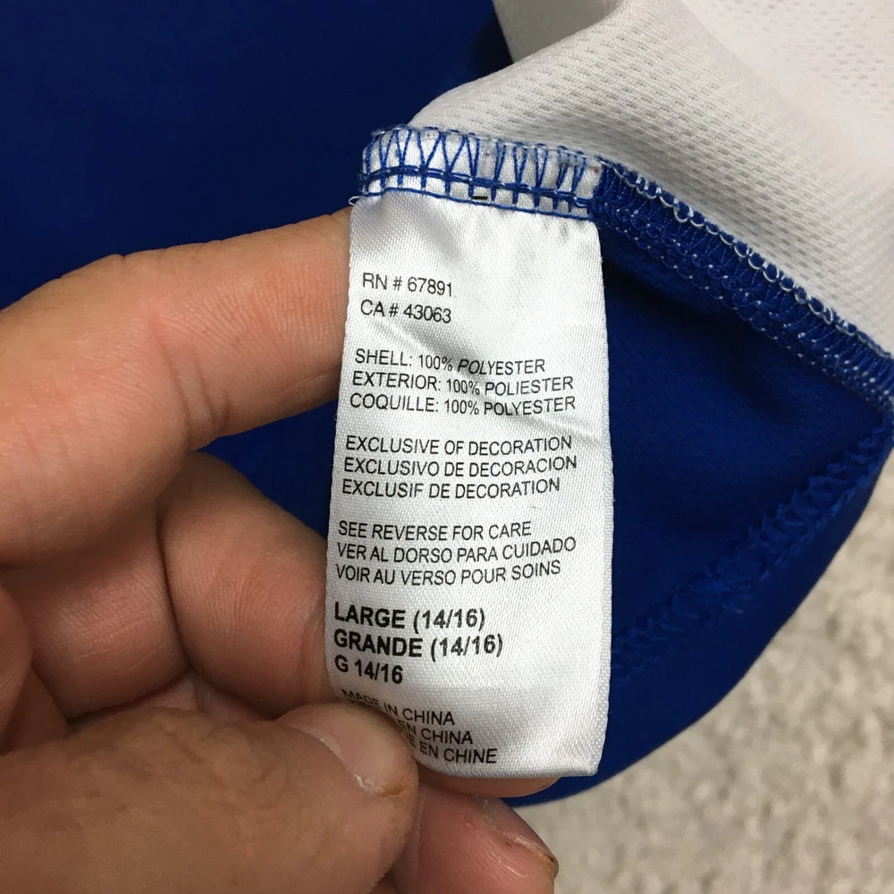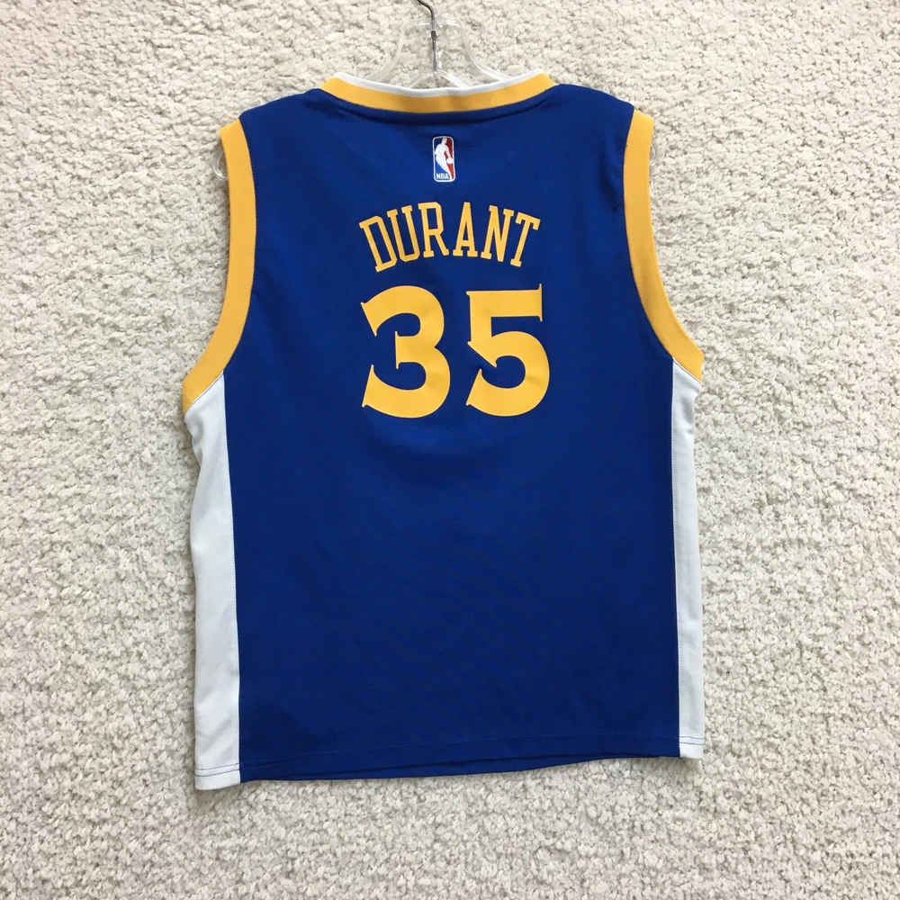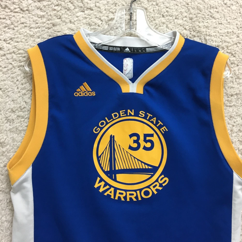 Brand: adidas Gender: Boys Color: Blue Sport: Basketball Team: Golden State Warriors Officially Licensed: Yes Country/Region of Manufacture: China Size: L Seller Notes: “Good Used Condition. Please, See Pictures for Full Condition and Measurements.” Pre & Post Season: Regular Season Player: Kevin Durant League: National Basketball Association (NBA) Product: Jersey