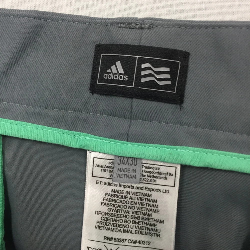 Style: Chino Personalise: No Handmade: No Size: 34 Size Type: Regular Pocket Type: Coin Pocket Country/Region of Manufacture: Unknown Garment Care: Machine Washable Vintage: No Closure: Button Department: Men Brand: adidas Inside Leg: 28 in Leg Style: Straight Material: Cotton Blend Accents: Button Season: Autumn, Spring, Summer, Winter Type: Trousers Fabric Type: Canvas Pattern: No Pattern Seller Notes: “Good used condition, check below for full description & photos.” Waist Size: 34 in Fit: Regular Rise: Mid (10-12 in) Colour: Grey Occasion: Business, Casual, Travel