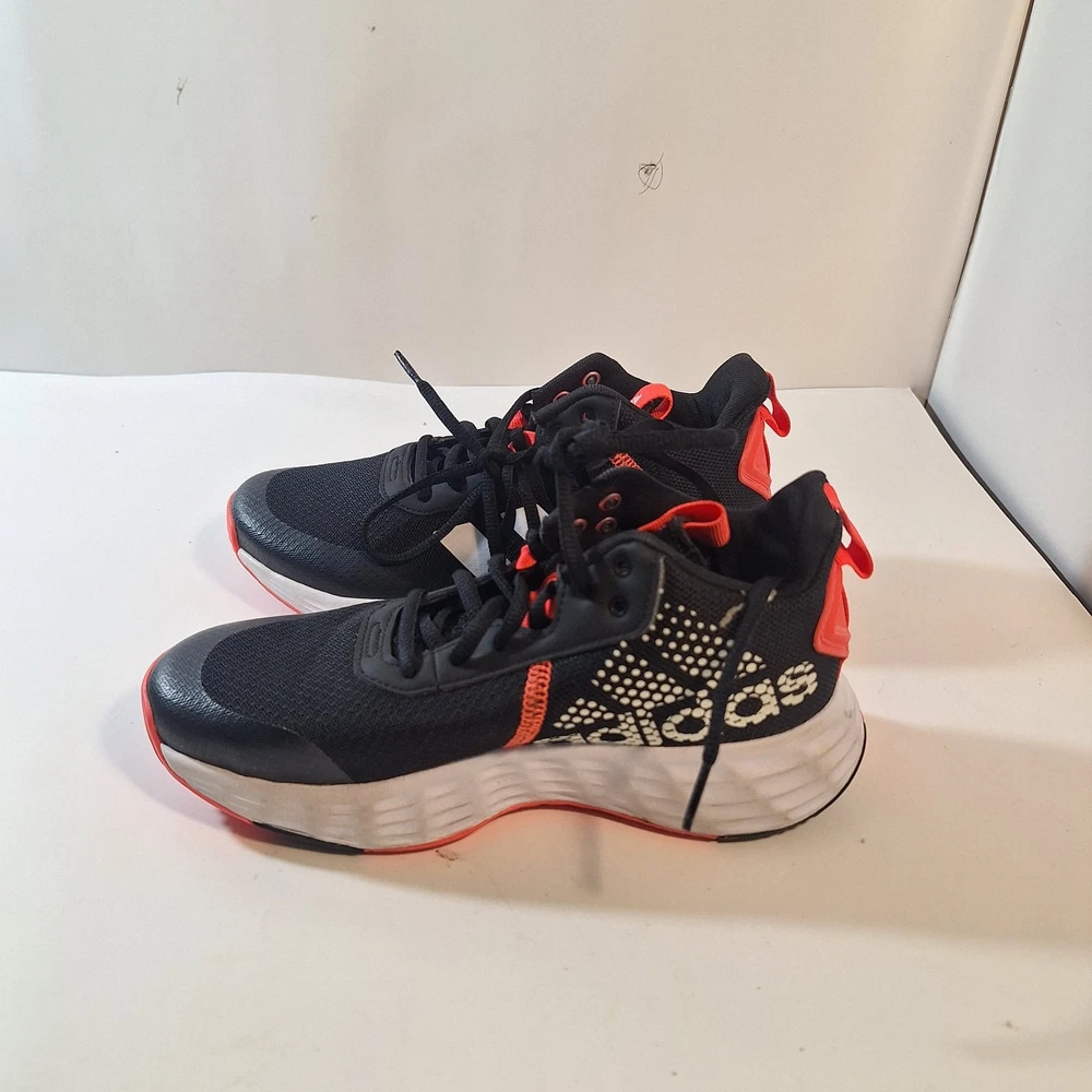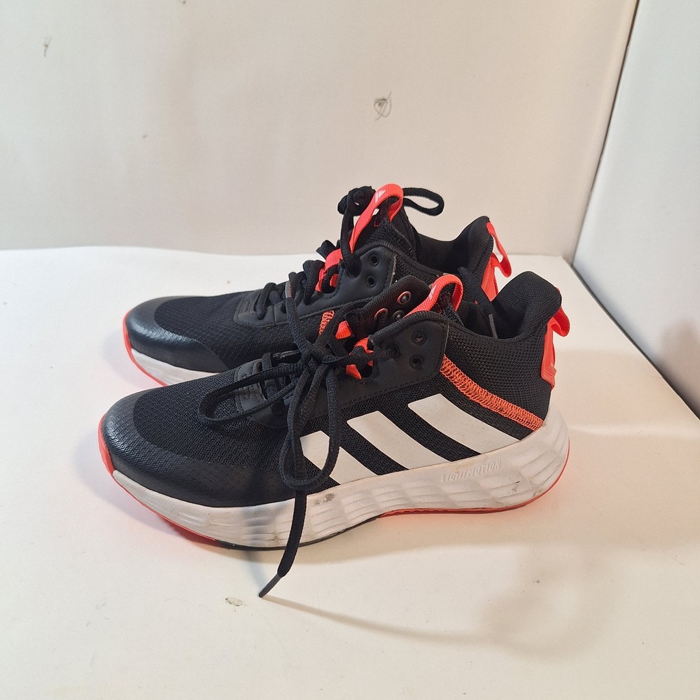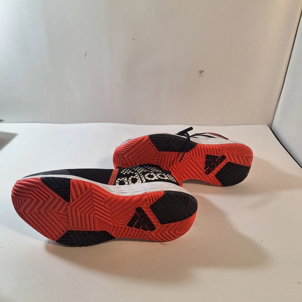 The product is a pair of Adidas court shoes in size 6 for boys. They feature a classic black, red, and white color scheme that is perfect for athletic activities. The sneakers are designed for active boys and are part of the Adidas Court product line, known for their quality and style. Perfect for sports or casual everyday wear, these sneakers will provide comfort and support for young athletes.