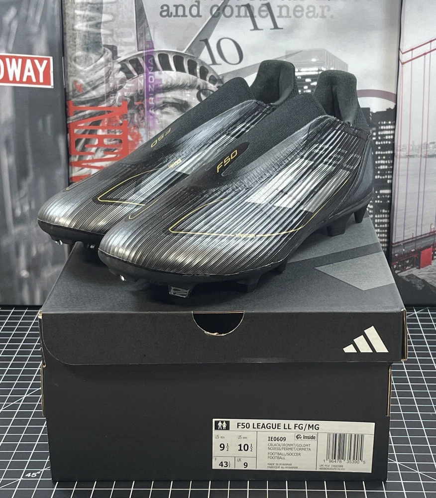 Adidas MNS Sz 9.5 US F50 League Laceless Firm/Multi-Ground Soccer cleats NEW • NEW WITH BOX • MENS SIZE 9.5US / 9 UK • CORE BLACK / IRON METALLIC / GOLD METALLIC Elevate your game with these Adidas F50 League Laceless Firm/Multi-Ground Soccer Cleats. Designed for the ultimate performance, these cleats are ideal for football enthusiasts. The black, iron metallic, and gold metallic color combination adds a touch of style to your outfit. Crafted with the finest quality materials, these cleats are built to last. The upper material is designed to provide maximum support and comfort, while the firm and multi-ground soleplate ensures maximum traction on any field. Perfect for men who love athletic shoes, these Adidas F50 cleats are a must-have for any soccer player.