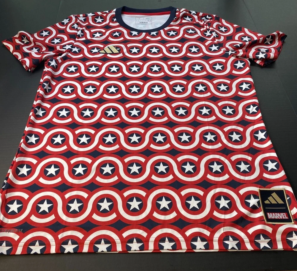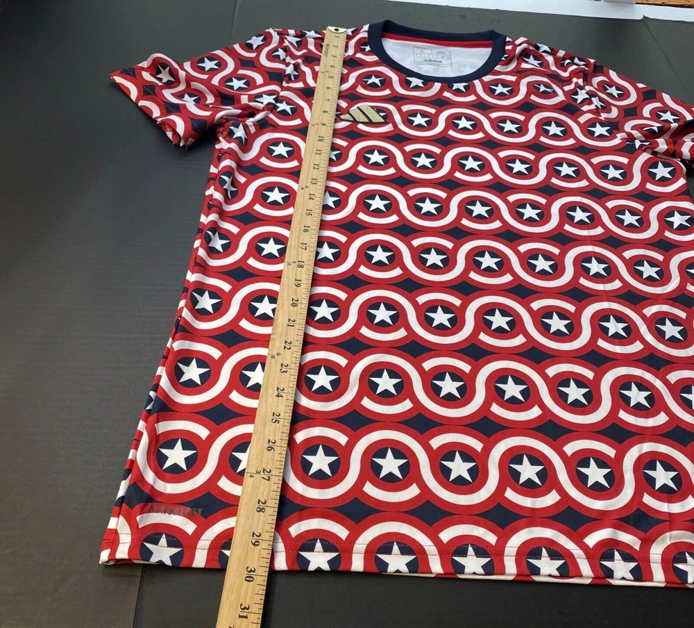 Adidas Marvel Captain America Shirt Size Large Slim Fit Red White & Blue mens new comes from a smoke and pet free place, you can contact us if you have questions. Please note that some photos may not show accurate shades. Photos are of the actual item you will receive. See photos for details. NEW. Please see photos for measurements