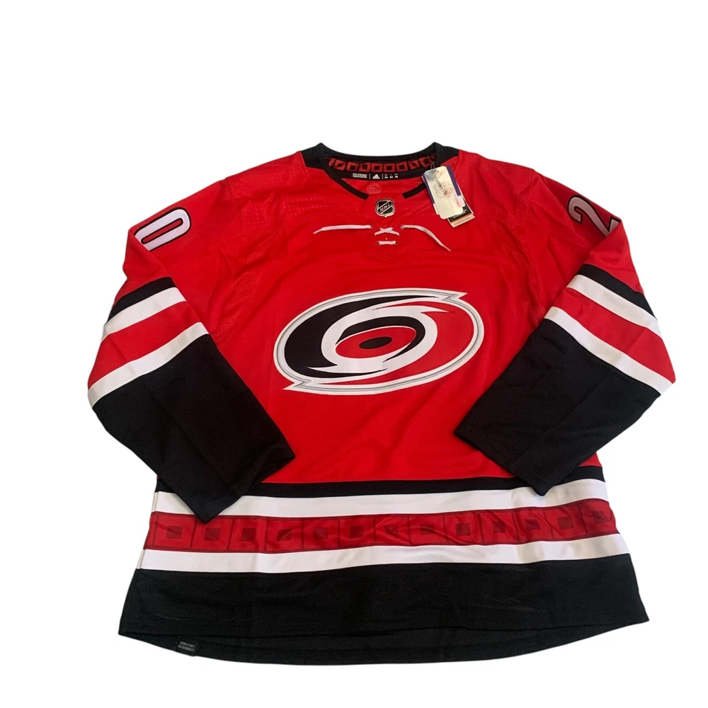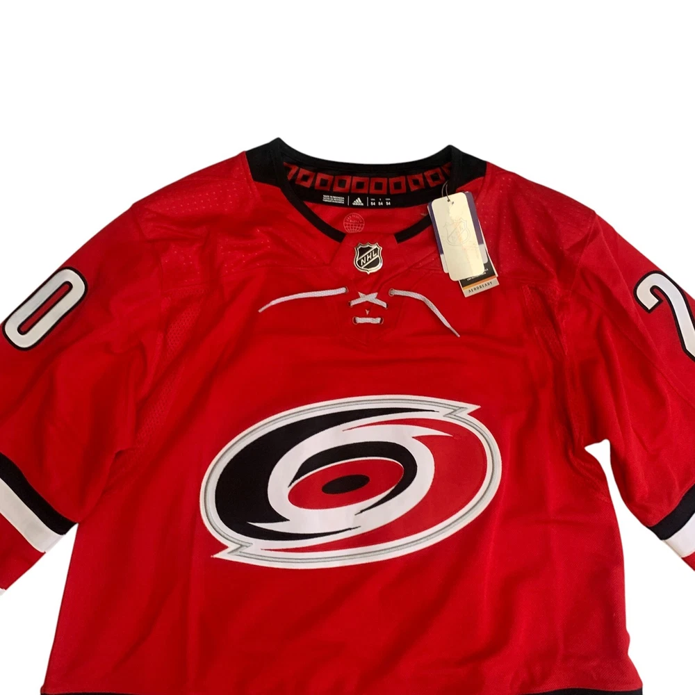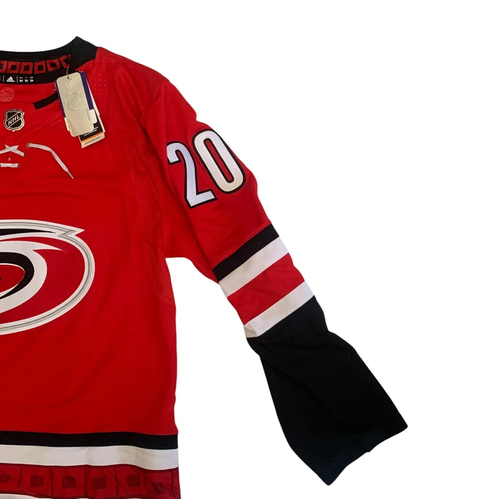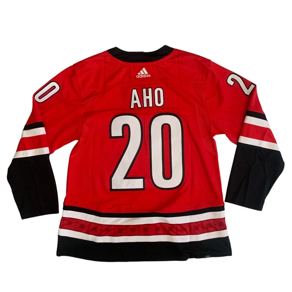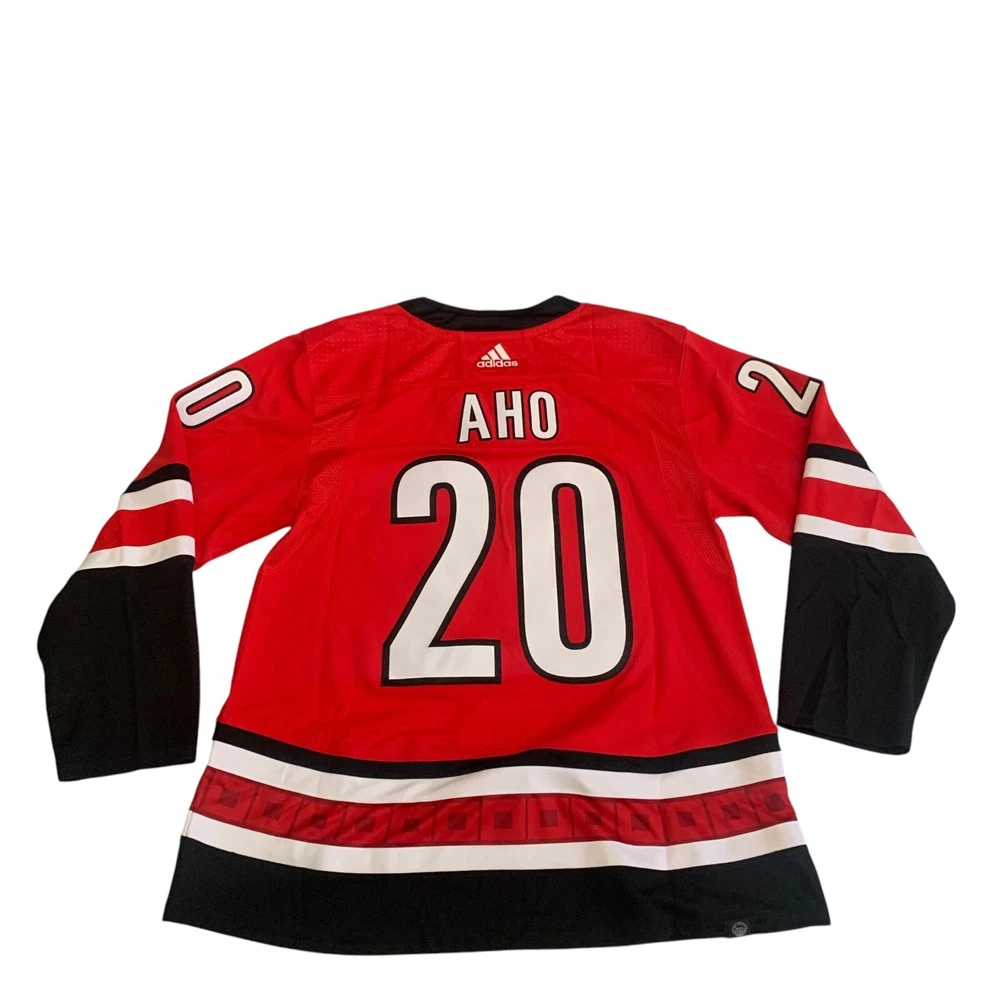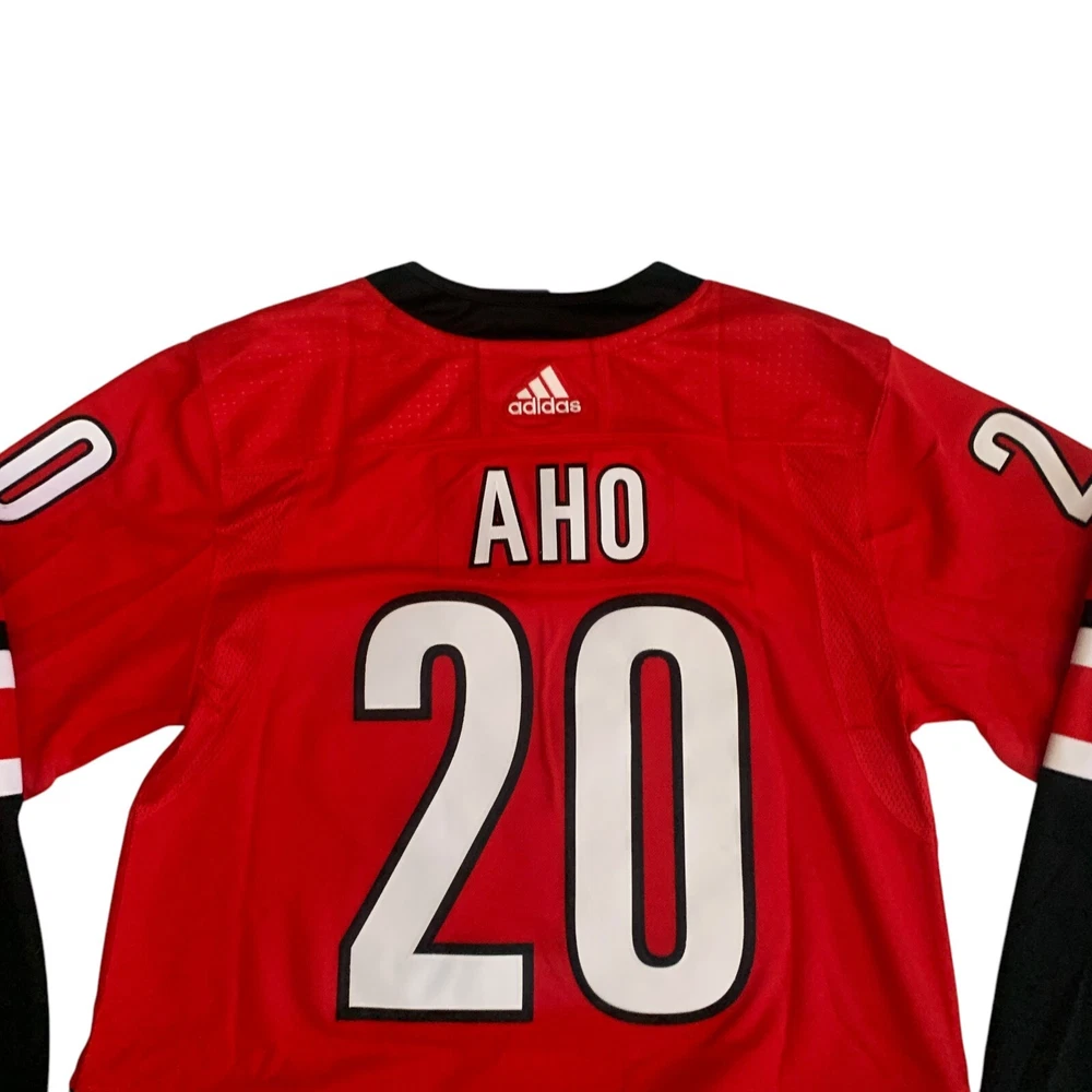 Material: 100% Polyester Recycle Team: Carolina Hurricanes Gender: Men Pre & Post Season: Regular Season Color: Red League: National Hockey League (NHL) Country/Region of Manufacture: Indonesia Brand: adidas Size: 54 Player: Sebastian Aho Sport: Hockey Product: Jersey