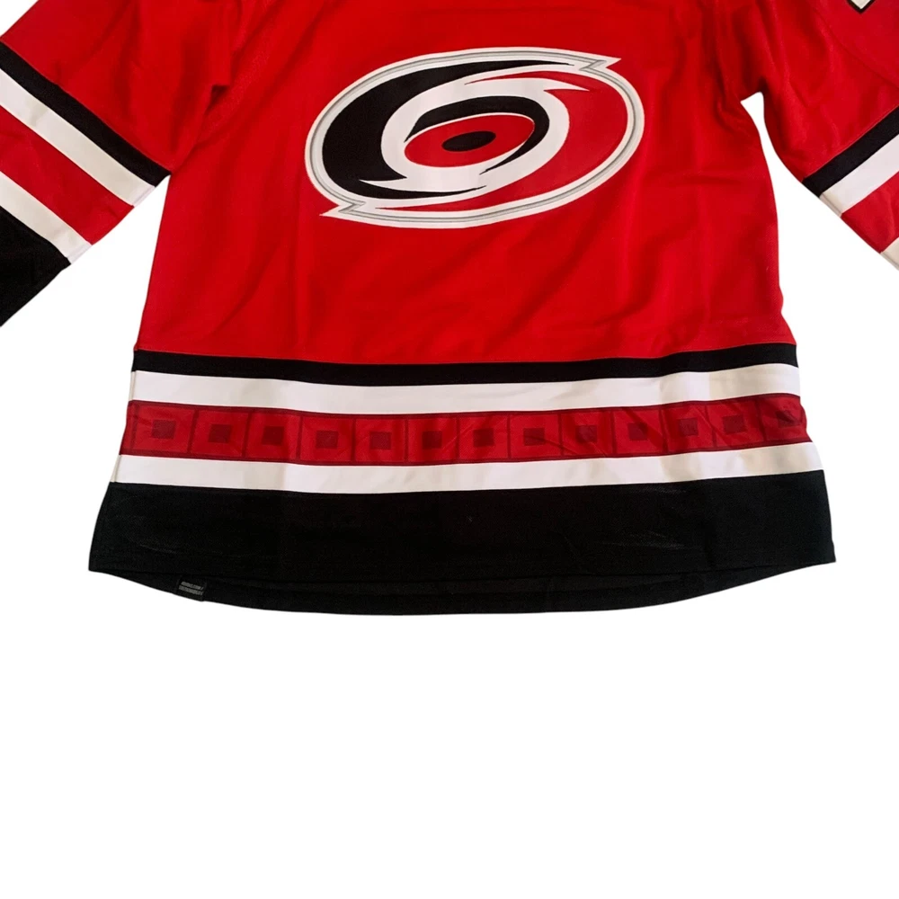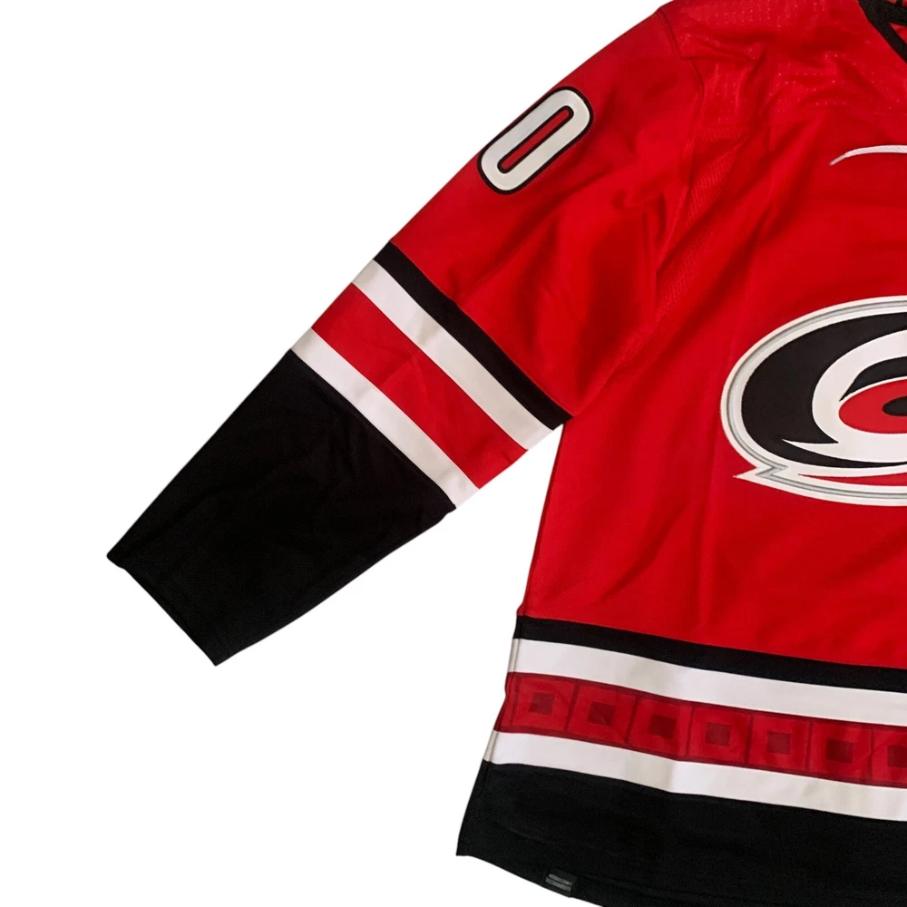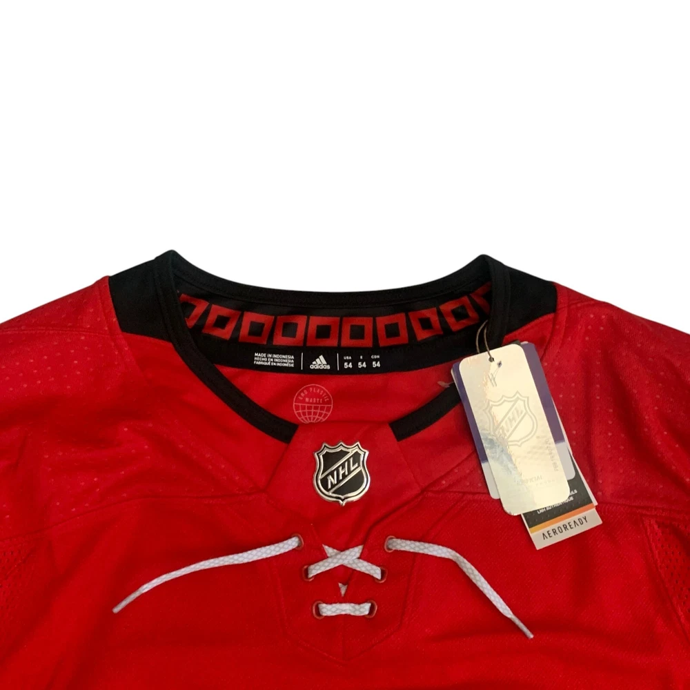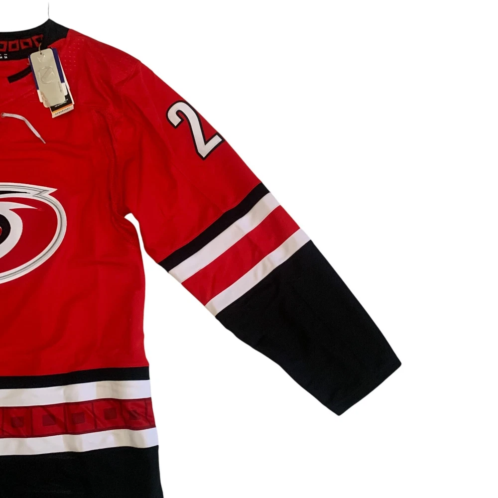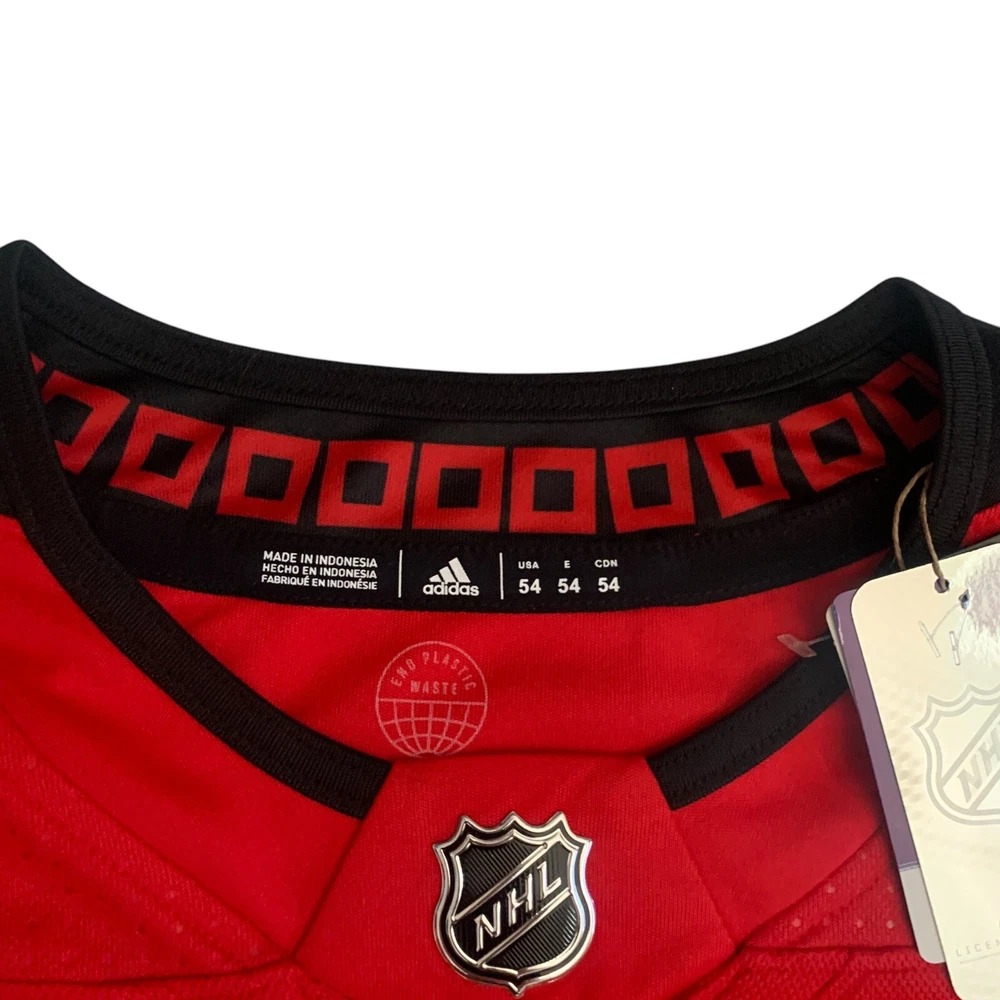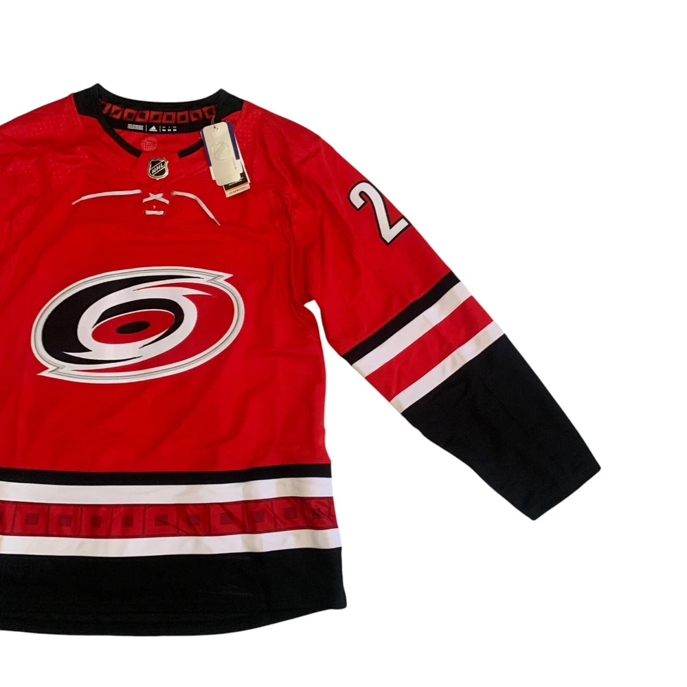 Material: 100% Polyester Recycle Team: Carolina Hurricanes Gender: Men Pre & Post Season: Regular Season Color: Red League: National Hockey League (NHL) Country/Region of Manufacture: Indonesia Brand: adidas Size: 54 Player: Sebastian Aho Sport: Hockey Product: Jersey
