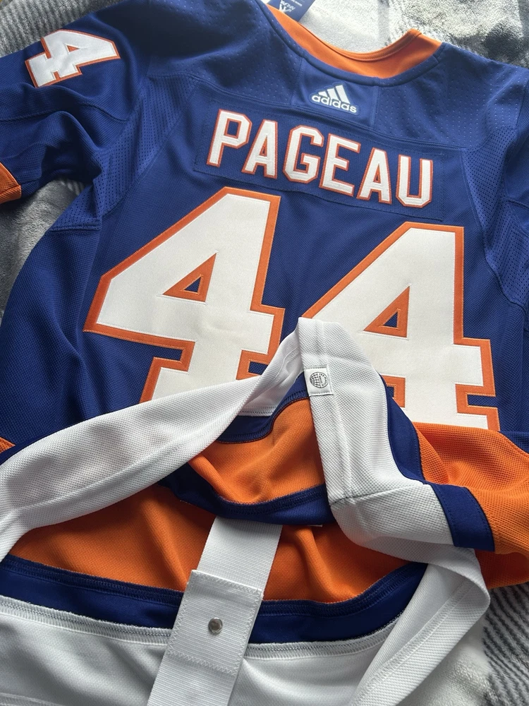 Sport:HockeyOfficially Licensed:YesCountry/Region of Manufacture:IndonesiaLeague:National Hockey League (NHL)Gender:MenSize:46Product:JerseyBrand:adidasColor:BluePlayer:PageauTeam:New York IslandersPre & Post Season:Regular Season