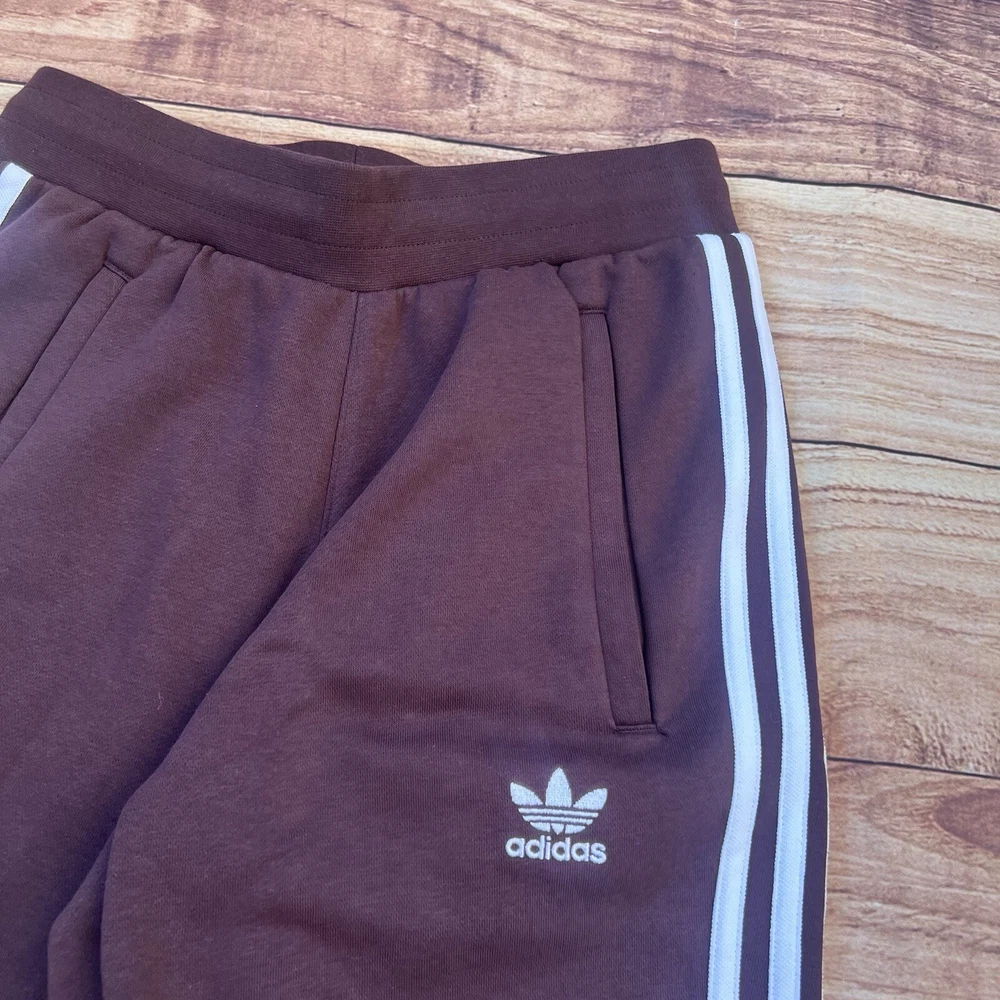Elevate your casual wardrobe with these Adidas Originals IM2109 Men's 3-Stripes Slim Fit Brown Tapered Leg Pants in size S. The drawstring closure and flat front design provide a comfortable and stylish fit, while the fleece fabric and Adidas logo accents add a touch of personality. These sweatpants are perfect for a casual occasion and are made of 30% polyester and 70% cotton for a durable and comfortable wear. The slimming feature of these pants provides a flattering silhouette, and the tapered leg style and 26-inch inseam add a modern touch. These pants are a solid addition to any wardrobe and are suitable for men of all ages. Made in Pakistan and part of the Adidas product line, these pants are a must-have for any fan of the brand.