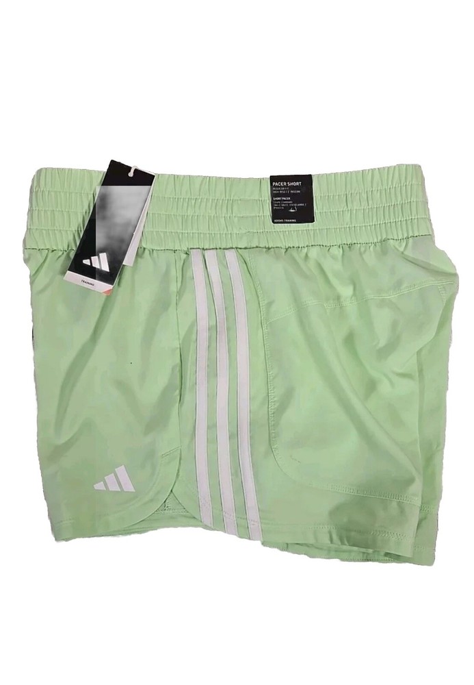 The Adidas Pacer Shorts are designed for women in size S with a regular fit and a high rise waist. Made from 100% polyester blended fabric, these athletic shorts have a 3" inseam and an elastic waist for comfort. They are machine washable and feature quick-dry, breathable, and lightweight properties, making them ideal for activities like gym training, walking, weightlifting, and running. Whether for travel, casual wear, or activewear, these shorts are a versatile choice for various seasons.