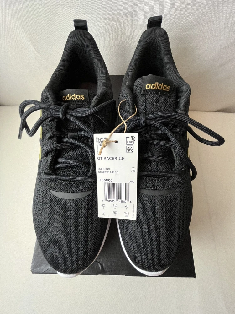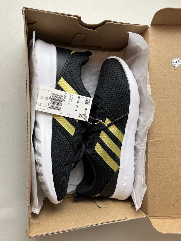 Adidas QT Racer 2.0 Black Gold Metallic Women's size 8. New w/box.
