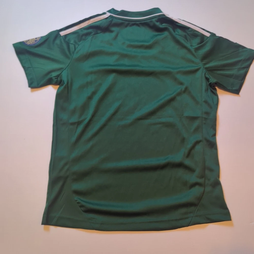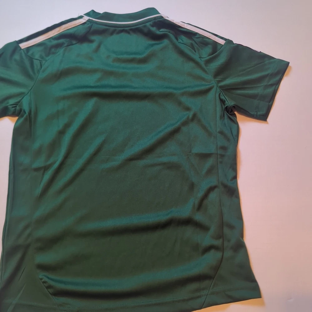 This Adidas soccer jersey is a must-have for any young player who wants to look and feel like a pro. The green jersey features the iconic Adidas logo and the Real Madrid team crest, making it a perfect addition to any soccer fan's collection. The short-sleeve jersey is made from high-quality materials that ensure comfort and durability, making it ideal for both indoor and outdoor play. The unisex jersey is available in youth medium size and is perfect for soccer, football, and futbol players of all levels. The 110-year patch adds a touch of class to the jersey, making it an excellent choice for any occasion. This jersey is a great way to show your support for your favorite team and to show off your love for soccer.