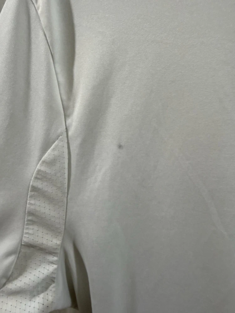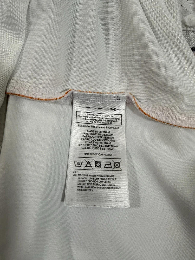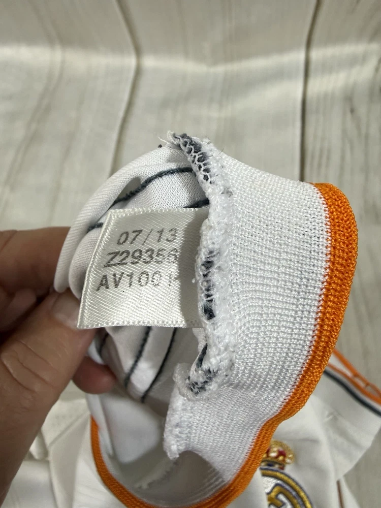Color: White Size: L Country of Origin: Ukraine Seller Notes: “Pre owned in good condition. some stains around arm pit that can be removed with deeper cleaning.” Brand: adidas Officially Licensed: Yes Gender: Men UPC: Does not apply Team: Real Madrid Sport: Soccer Product: Shirt gtin13: Does not apply
