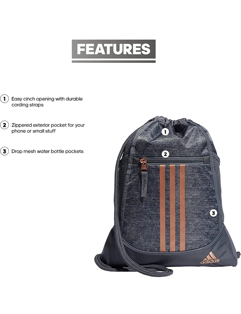 Adidas Sack pack Alliance II 6 colors available: White, Gray, Red, Pink, blue, Gray/Rose Gold Drawstring Athletic Soccer Sports Bag New with tags ships usps includes tracking #