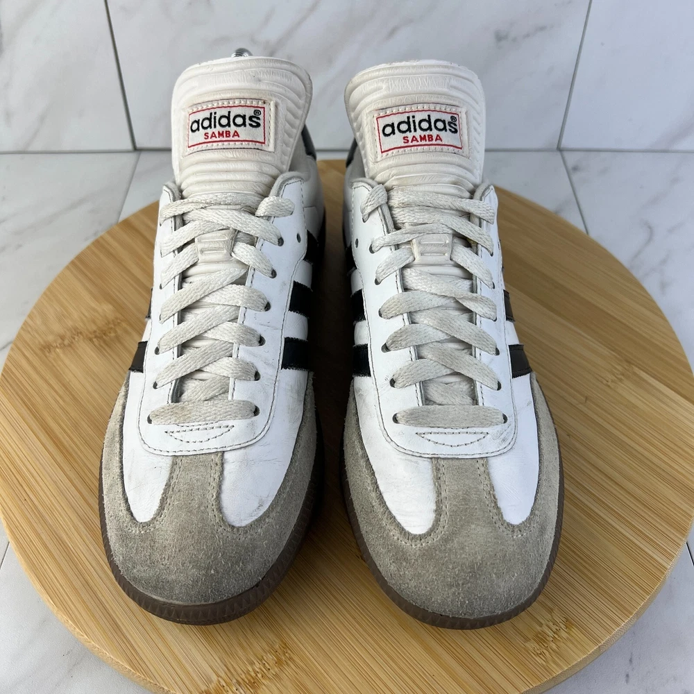 Type: Athletic Performance/Activity: Soccer Color: White Features: Breathable, Comfort, Cushioned Model: adidas Samba Product Line: adidas Samba Shoe Shaft Style: Low Top Style Code: 772109 Country/Region of Manufacture: Vietnam US Shoe Size: 6.5 UK Shoe Size: 6 Seller Notes: “Pre-owned No rips, holes, or tears. Smoke-free. No box. See all photos for exact condition.” Style: Sneaker Brand: adidas Customized: No Department: Men Season: Fall, Spring, Summer, Winter Closure: Lace Up Vintage: No Year Manufactured: 2011 EU Shoe Size: 39 1/3 Shoe Width: Standard