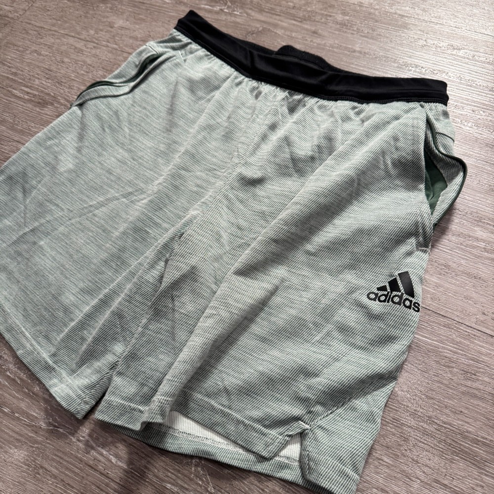 Occasion: Activewear Department: Men Inseam: 8 in Size Type: Regular Fit: Athletic Size: M Pattern: Solid Fabric Type: Knit Closure: Drawstring Features: Pockets Waist Size: 28 in Compression Area: Waist Brand: adidas Material: Polyester Color: Green Style: Athletic Performance/Activity: Gym & Training, Running & Jogging