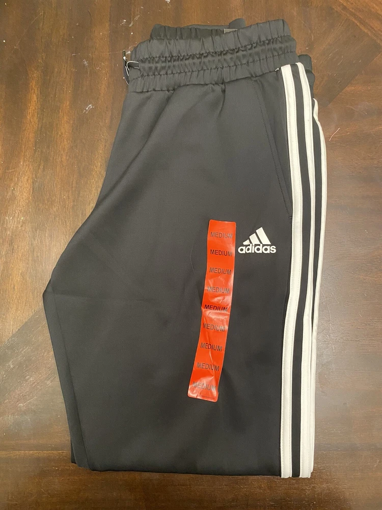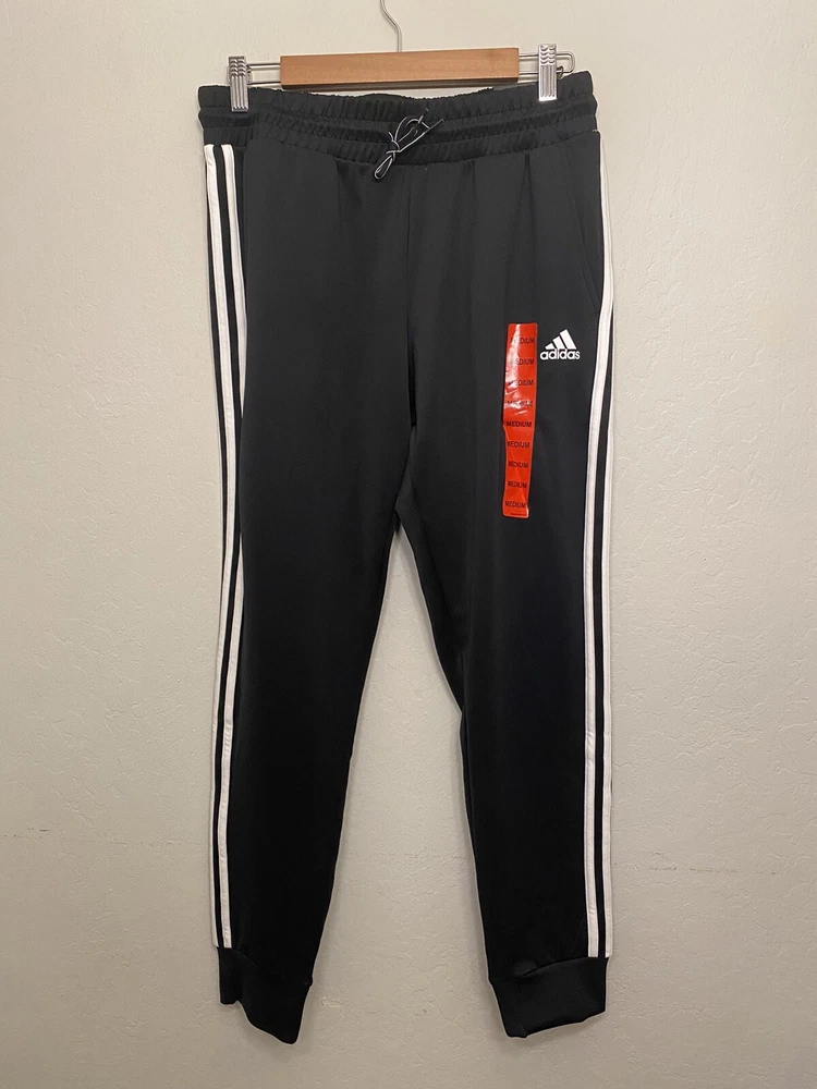 Adidas Standard Essentials Tapered 3 Stripes Sweat Pants Black Mens M GK8821. Condition is New with tags. Shipped with USPS Ground Advantage.