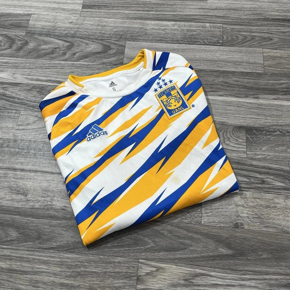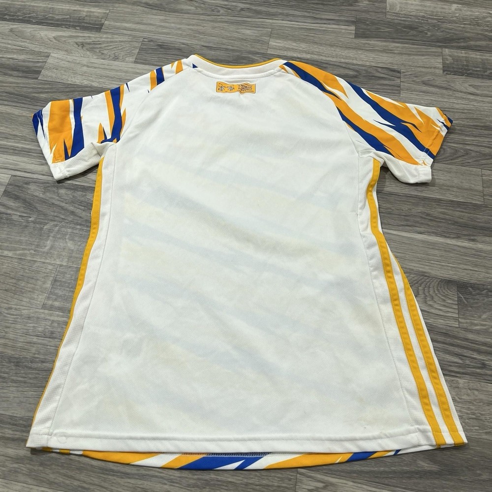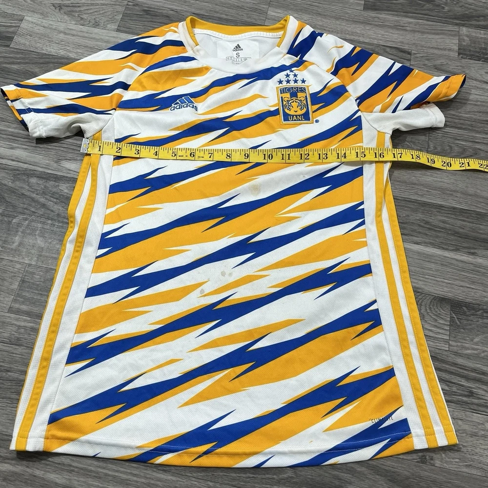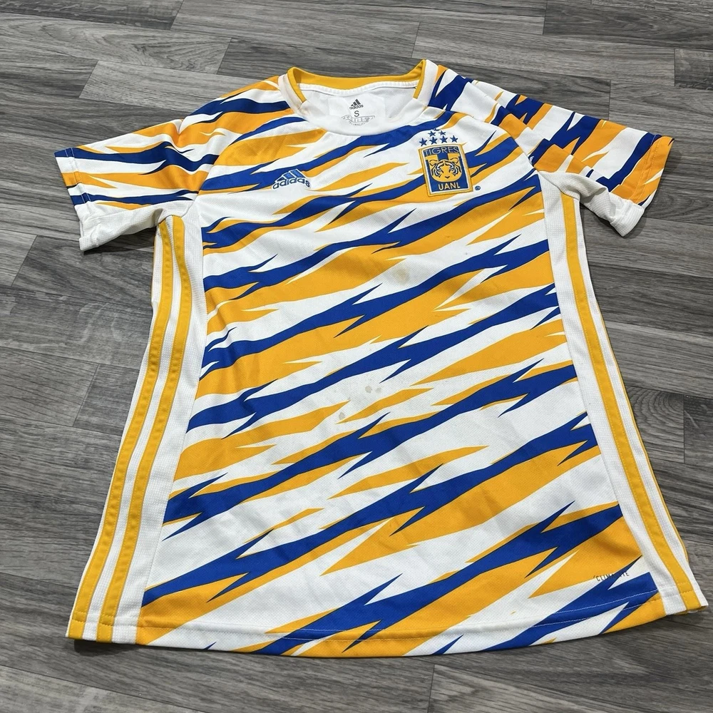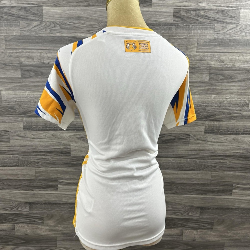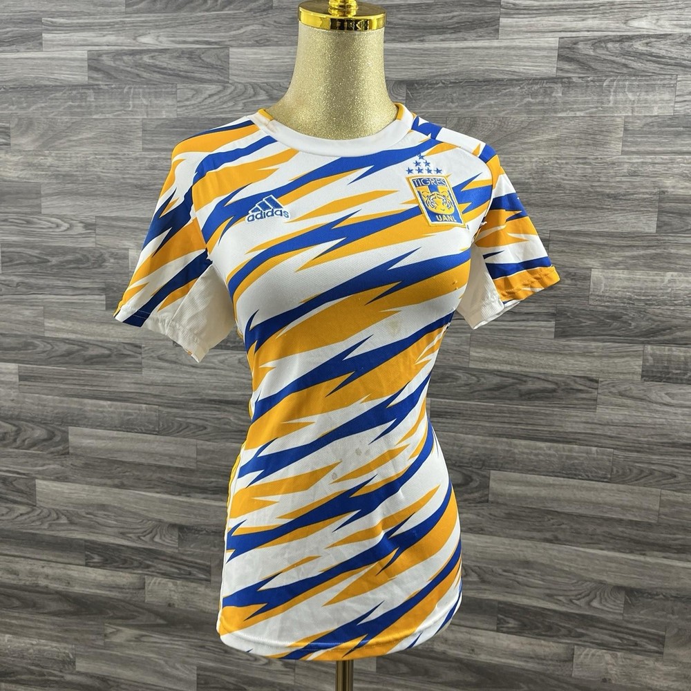 The product is an officially licensed 2014 Adidas jersey in blue, featuring the logo and colors of the Tigres UANL international soccer club from Mexico. Designed specifically for women in size small, this jersey is perfect for fans of the team looking to support them in style on the soccer field or at home. Made by a trusted brand like Adidas, this jersey is designed for high performance and comfort during intense games or casual wear. Show your allegiance to Tigres UANL and stand out in this authentic fan apparel. Listing and template services provided by inkFrog