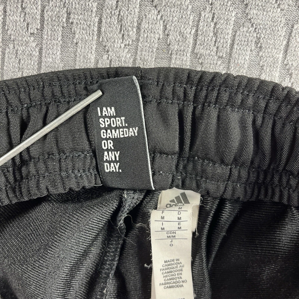Closure: Drawstring Garment Care: Machine Washable Pattern: Striped Theme: Classic Size: M Seller Notes: “"good with some signs of wear"” Occasion: Activewear Size Type: Regular Style: Sweatpants Season: Fall, Spring, Summer, Winter Brand: adidas Type: Pants Leg Style: Tapered Fit: Athletic Color: Black Department: Men