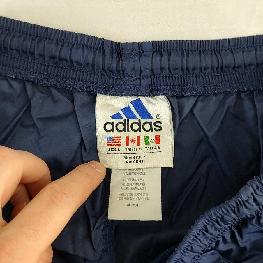 Adidas Vintage Track Pants Adult Large Blue Baggy Y2K Grunge Streetwear Punk Has a stain on the back as shown in pics other than that in good condition has been washed before listing refer to pics before purchasing as all defects are shown