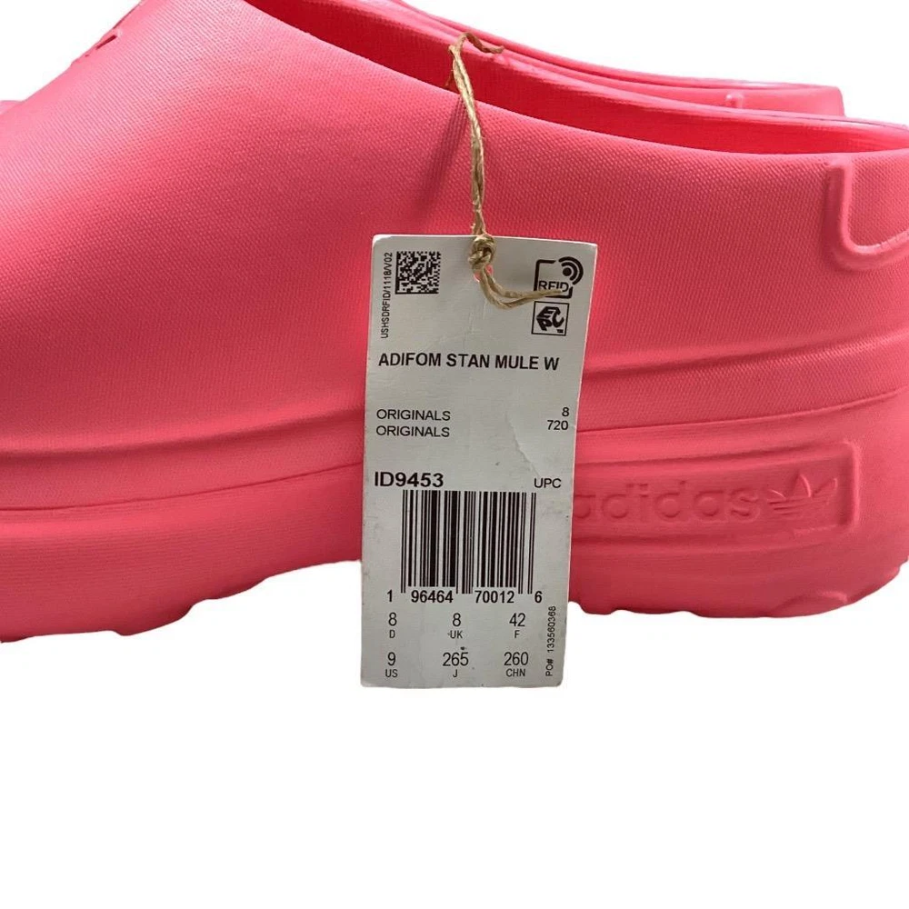 Adidas Adifoam Stan Smith Womens 9 Mules Shoes Pink Foam Vegan Clogs NEW Footbed width: Medium Measurements from Footbed: Length(toe/heel)-10.5" Width at ball-4.0" Heel Height-1.75" Measure inside your favorite flat shoes for size comparison. Remix of an iconic style for fun warm weather wear Clean smooth upper and heel Style nod to the Stan Smith trainer Made from sugarcane foam Removable lined moderately firm ortholite foam insole Perfect for the summer Condition: New without box First quality with one issue Small pin hole from tag barb insertion. See pictures Be sure to check out the store for other great items and bargains. And remember we combine shipping on multiple purchases. Adidas Adifoam Stan Smith Womens 9 Mules Shoes Pink Foam Vegan Clogs NEW Footbed width: Medium Measurements from Footbed: Length(toe/heel)-10.5" Width at ball-4.0" Heel Height-1.75" Measure inside your favorite flat shoes for size comparison. Remix of an iconic style for fun warm weather wear Clean smooth upper and heel Style nod to the Stan Smith trainer Made from sugarcane foam Removable lined moderately firm ortholite foam insole Perfect for the summer Condition: New without box First quality with one issue Small pin hole from tag barb insertion. See pictures Be sure to check out the store for other great items and bargains. And remember we combine shipping on multiple purchases.