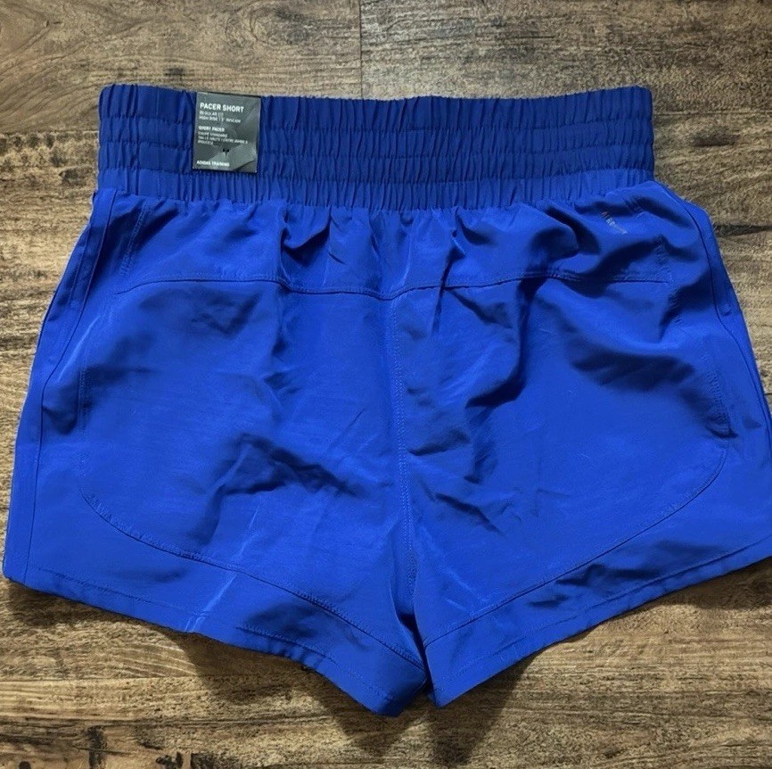 The adidas Women's Pacer Training 3-Stripes Woven High-Rise 3" Shorts in Blue, size Medium, are designed for women looking for comfortable and stylish activewear. The high-rise design and 3" inseam provide a flattering fit, while the athletic style and striped pattern add a sporty touch. Perfect for workouts or casual outings, these shorts offer both fashion and functionality.