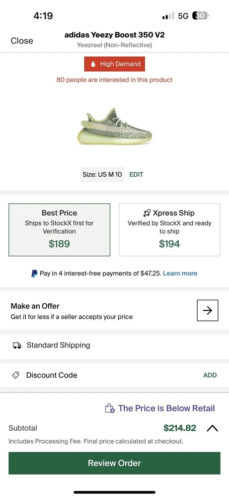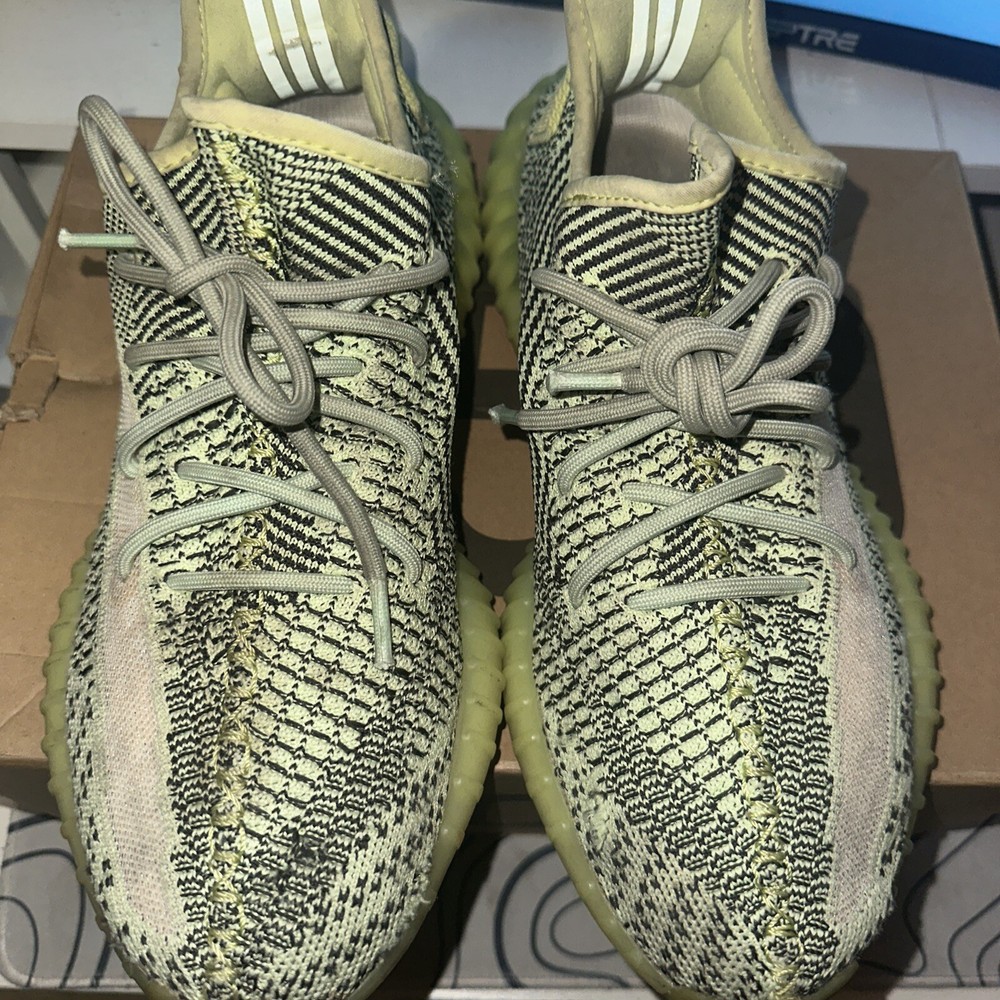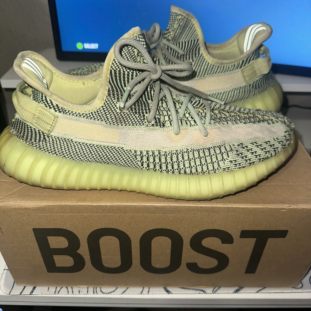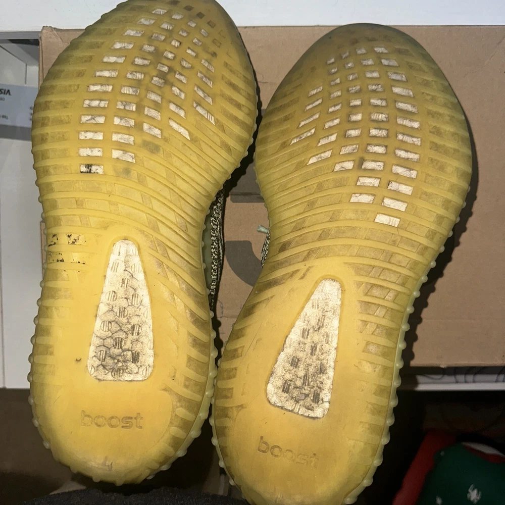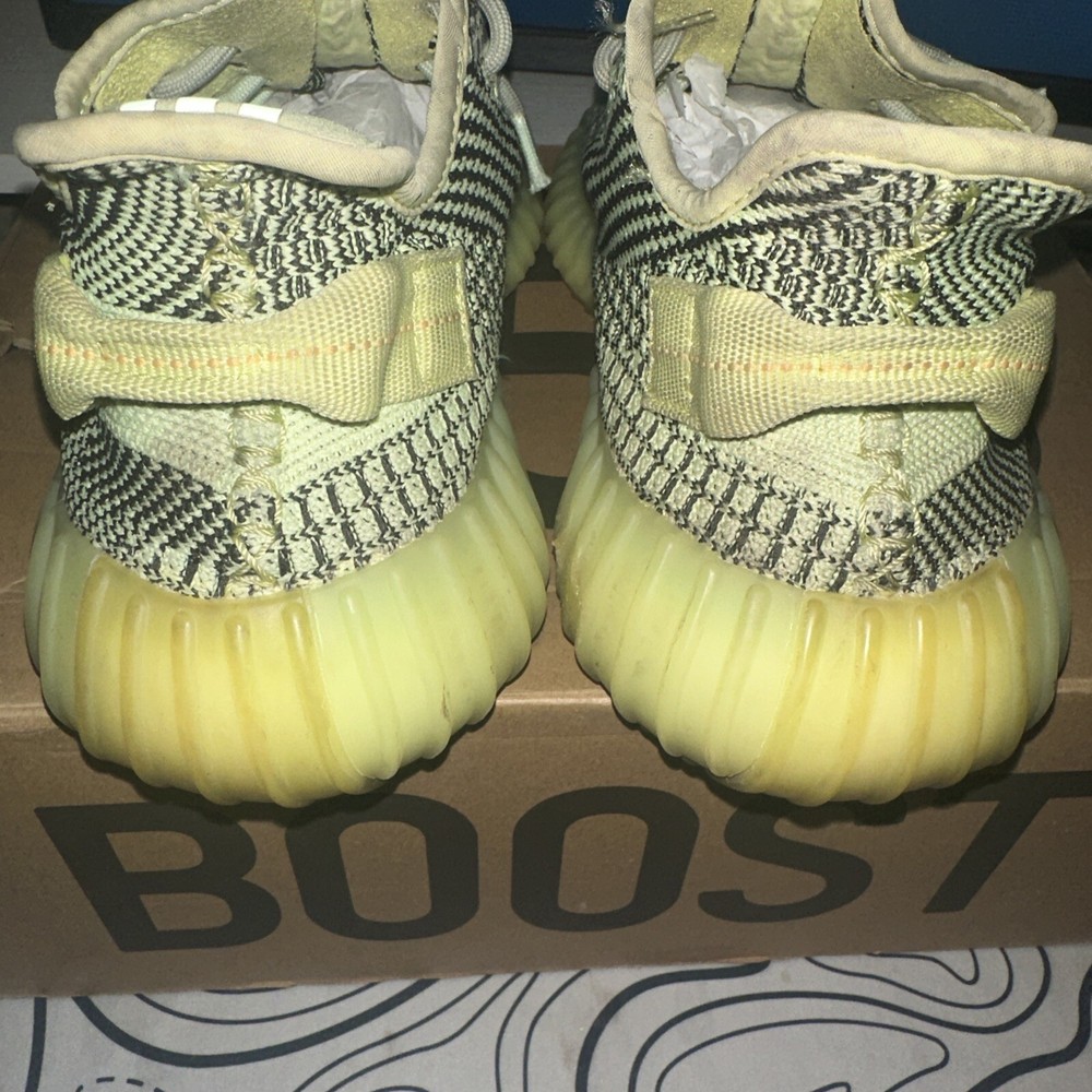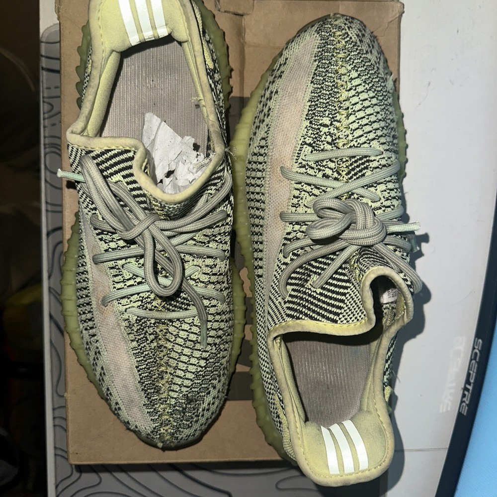 This Adidas Men's Yeezy Boost 350 V2 Yeezreel in size 10 features a low-top silhouette in a vibrant green and yellow colorway. Released in 2019, this sneaker is part of the adidas Yeezy product line designed by Kanye West. The upper is constructed with Primeknit material, offering comfort and flexibility suitable for activities like walking, weightlifting, running, and school. This pre-owned shoe is ideal for casual, activewear, and workwear occasions, making it a versatile and stylish choice for men who appreciate athletic footwear with a touch of urban flair. Come with original box.