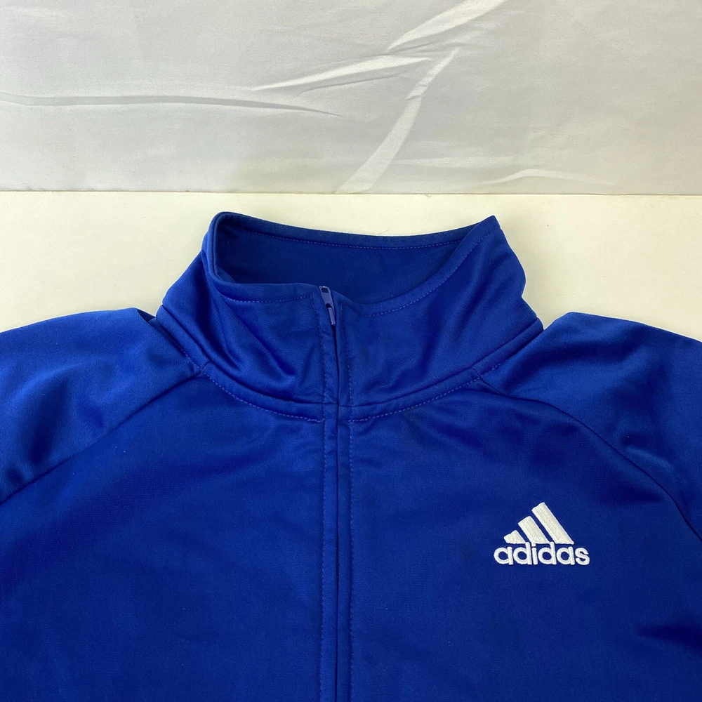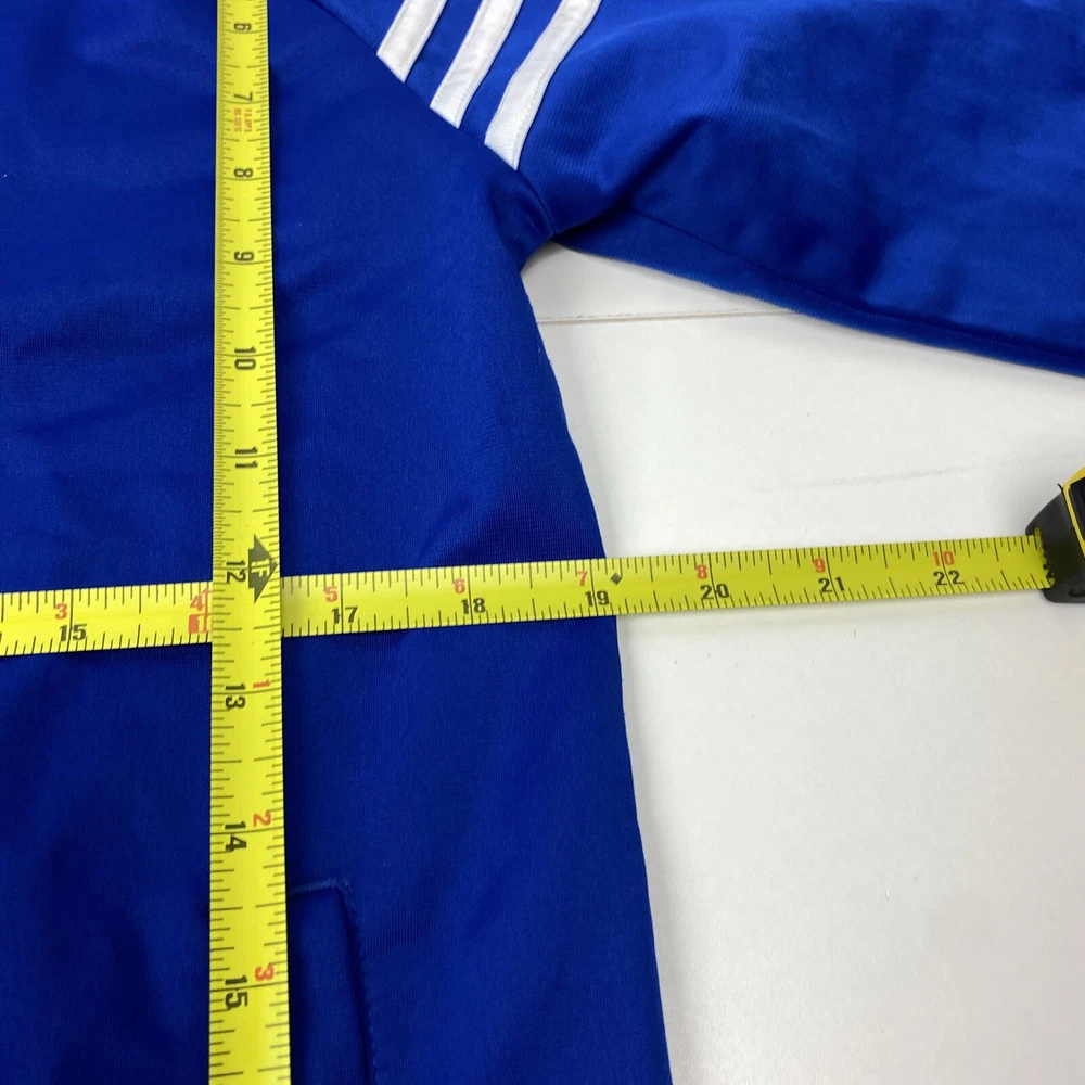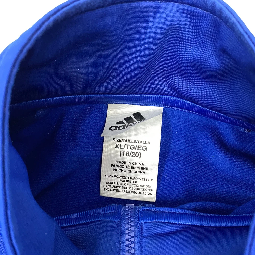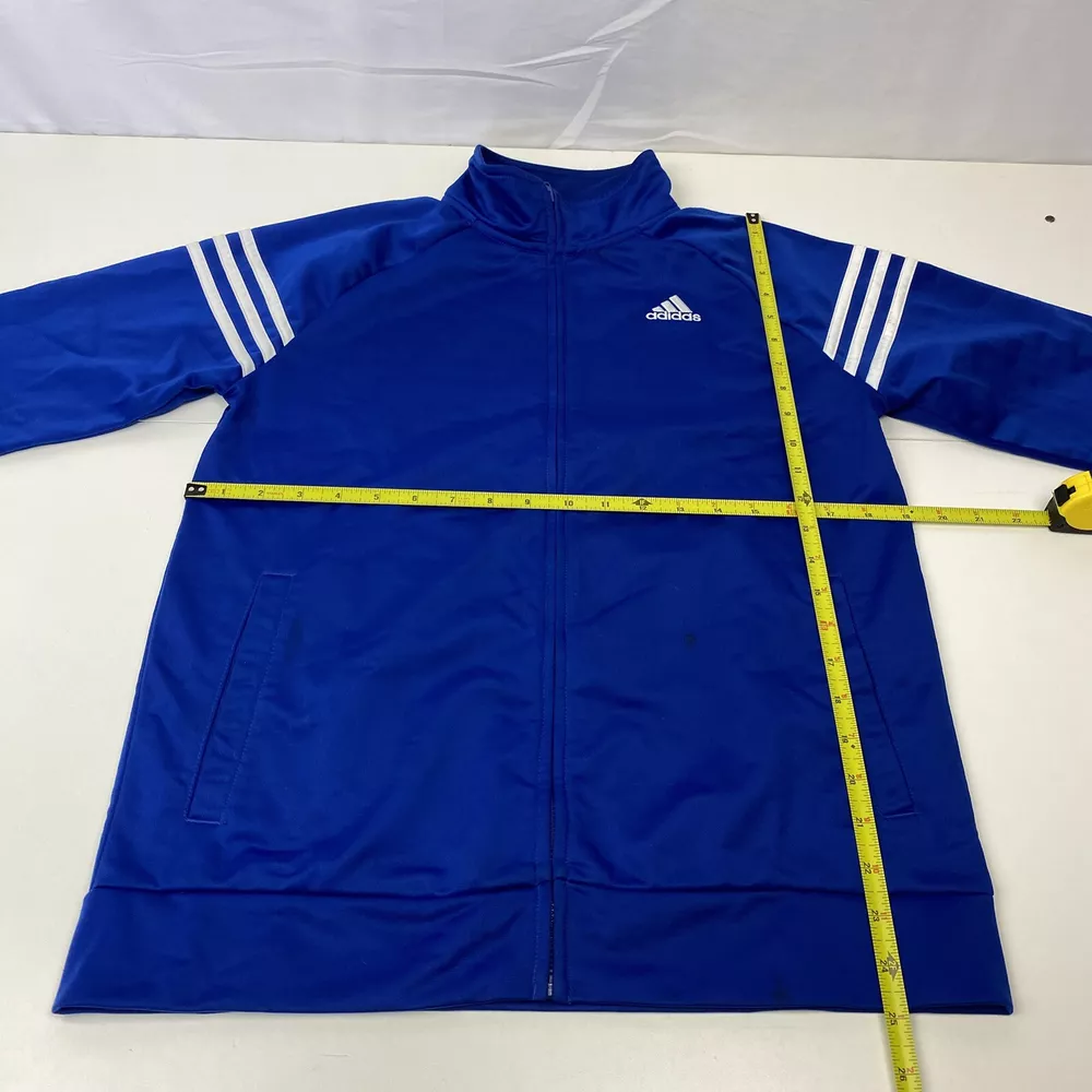 Features: Full Zip, Pockets Type: Sweatshirt Color: Blue Brand: adidas Sleeve Length: Long Sleeve Style: Full Zip Size: XL Neckline: Mock Neck Pattern: Striped Department: Boys