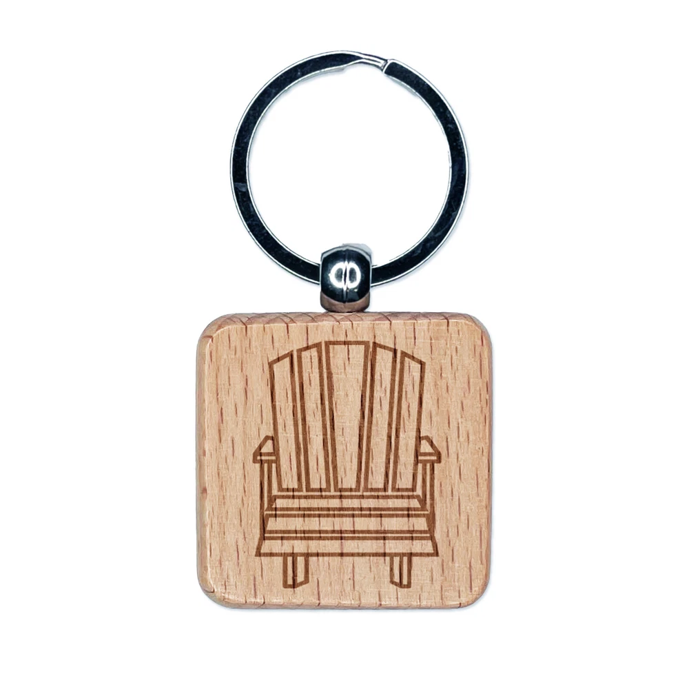 Adirondack Beach Lake Chair Outline Engraved Wood Square Keychain Tag Charm