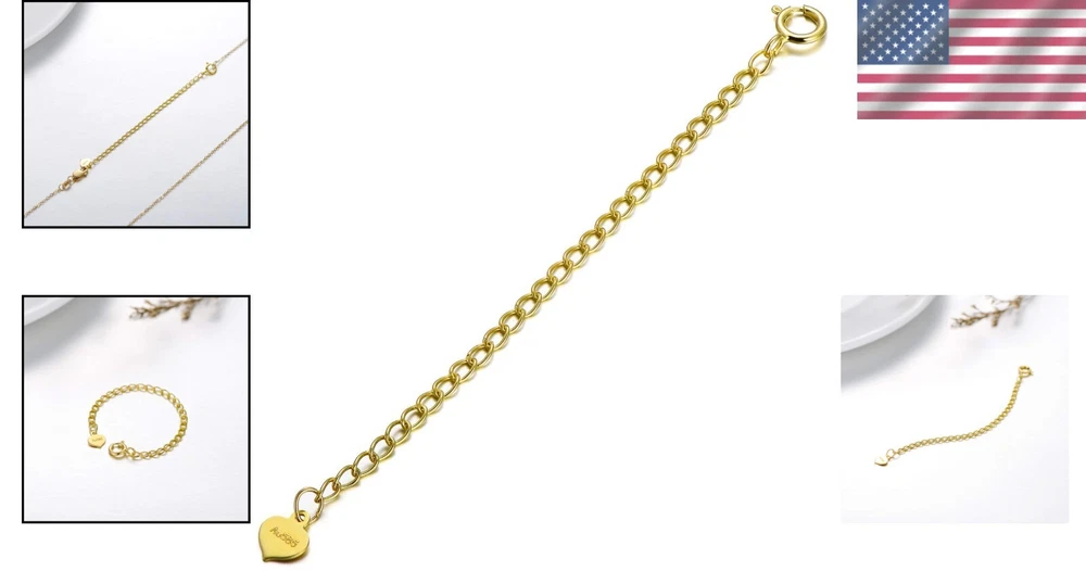 Adjustable 14K Gold Chain Extender - Lengthen Necklaces & Bracelets Effortlessly ‹ › ‹ › ‹ › ‹ › ‹ › ‹ › ‹ › ‹ › ‹ › Adjustable 14K Gold Chain Extender Effortlessly Lengthen Your Necklaces & Bracelets Product Features: Genuine 14K Gold: Crafted from real 14 karat gold, this extender is made up of 58.5% gold and 41.5% alloy, offering superior durability and aesthetic appeal. Removable & Adjustable: Easily extend your favorite necklace, choker, bracelet, anklet, and more, adding an extra length of up to 3 inches in under a minute. Fine Material: High-polished design is nickel-free and hypoallergenic, making it perfect for sensitive skin. Ideal Specifications: The cable chain length measures 3 inches with a width of 3 mm, ensuring a durable and stylish extension. Comes with a secure spring lock clasp for added comfort. Perfect Gift for Her: An exquisite choice for anniversaries, birthdays, weddings, Mother's Day, or any special occasion—ideal for daughters, mothers, friends, and yourself. Customer Satisfaction: Enjoy peace of mind with our money-back guarantee. We are dedicated to providing 24-hour customer service to assist you. Why Choose Our Gold Chain Extender? Transform your jewelry collection effortlessly with this Adjustable 14K Gold Chain Extender. Designed for those who appreciate minimalistic styles but want versatility, this extender not only adds length but also enhances the elegance of your favorite pieces. Its hypoallergenic properties ensure safety for sensitive wearers while the luxurious gold shine adds a touch of glamour to any outfit. Don't wait to elevate your jewelry experience. Make this exquisite piece yours today and add a radiant sparkle to your collection! Shipping Free & Fast Shipping - We offer free shipping to most of the USA with a normal delivery time of 3-7 days. However, due to the current situation, additional delivery time (up to 3 weeks) may be required for some items. Alternative Carriers - We may use alternative carriers (e.g. USPS, FedEx, UPS, etc.) to ensure your package arrives safely and on time. Due to the use of multiple carriers, we are unable to provide a tracking number automatically. Handling Time - Orders are processed and shipped within 1-2 business days of receiving cleared payment. Shipping Restrictions - Shipping to Alaska, Hawaii, Puerto Rico, Guam, and other US territories may incur shipping charges or delivery restrictions. Please contact us before ordering, or your order can be refunded/cancelled. State Restrictions - There may be restrictions based on your state of purchase. For example, certain items may not be shipped to California due to state regulations. Contact for Tracking Updates - If you require tracking updates or have any concerns about the delivery of your order, please feel free to contact us, and we will be happy to assist you. Return 30-Day Hassle-Free Returns - We want you to be completely satisfied with your purchase. If you are not, you can return the item within 30 days of receiving it for a full refund or exchange. Easy Return Process - To start a return, simply contact us and we will provide you with a prepaid return shipping label and detailed instructions. Restocking Fee - There are no restocking fees for returns. However, the buyer is responsible for return shipping costs if the return is not due to a seller's error. Refund Processing Time - Refunds will be processed within 5 business days of receiving the returned item in its original condition. Payment We accept all major credit cards, PayPal, and Apple Pay for your convenience. Your payment information is secure and encrypted to ensure a safe and seamless transaction. Please complete your payment within 3 days of purchase to avoid any delays in shipping. Feedback Your feedback is extremely important to us. We strive to provide the best products and customer service possible. If you are satisfied with your purchase, please take a moment to leave us a positive review. If you have any concerns or issues with your order, please contact us before leaving negative feedback. We are committed to resolving any problems and ensuring your satisfaction. Contact Us If you have any questions or concerns, please feel free to reach out to our customer support team. You can contact us through the eBay messaging system. We are available Monday to Friday, 9:00 am to 5:00 pm EST, and we will do our best to respond to your inquiry within 24 hours. Thank you for supporting our small family business! UPC: Not Set Metal Purity: 14K Unit Quantity: 3 Style: Chain Theme: Gold Chain Necklace Extender Secondary Stone: No Stone Material: Gold Main Stone Treatment: Not Enhanced Occasion: Anniversary,Birthday,Christmas,Mother's Day,Valentine's Day,Wedding Features: Adjustable,Nickel-Free,Hypoallergenic Brand: Unbranded Type: Necklace Color: Yellow Gold Main Stone Color: Gold Pendant Shape: Not Set Metal: 14K Gold Main Stone: No Stone Base Metal: Not Set Pendant/Locket Type: Not Set Main Stone Shape: Not Set Main Stone Creation: Natural Country of Origin: Not Set Cut Grade: Not Set Necklace Length: Not Set Setting Style: Not Set Number of Gemstones: Not Set Chain Type: Cable Closure: Lobster Country/Region of Manufacture: Not Set Gemstone Clarity Grade: Not Set Era: Not Set MPN: Not Set Main Stone Depth: Not Set Main Stone Length: Not Set Main Stone Width: Not Set Seller Warranty: Yes Unit Type: Unit Personalize: Not Set Customized: Not Set Antique: Not Set Signed: Not Set Vintage: Not Set Wholesale: Not Set Handmade: Not Set