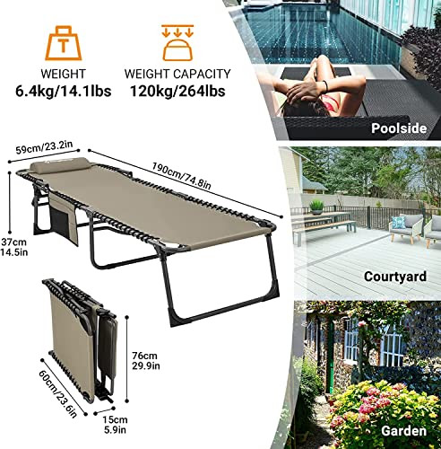This chaise lounge is a game-changer for outdoor relaxation! The 5-position adjustment makes it perfect for tanning, reading, or just lounging—so comfortable I almost fell asleep! Super sturdy steel frame holds up well, yet it folds easily for storage. Beige color looks chic by the pool or beach. Super fast delivery and great seller—totally worth it!