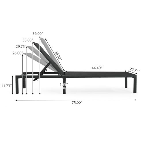 Model Name: Perlas Age Range Description: Adult Brand: Does Not Apply Pattern: Solid MPN: Does Not Apply Country of Origin: China Item model number: 319586R EAN: Does Not Apply Item Height: 1 Size: 75.00"D x 22.75"W x 11.73"H Shape: Rectangular UPC: 194798184292 Item Weight: 16.75 pounds Color: Black Item Width: 1 Special Feature: Adjustable Backrest gtin13: Does Not Apply Type: Does Not Apply Included Components: Two (2) Chaise Lounge Product Care Instructions: Wipe Clean Manufacturer: Does Not Apply Product Dimensions: 75"D x 22.75"W x 11.73"H Style: Modern Item Length: 1