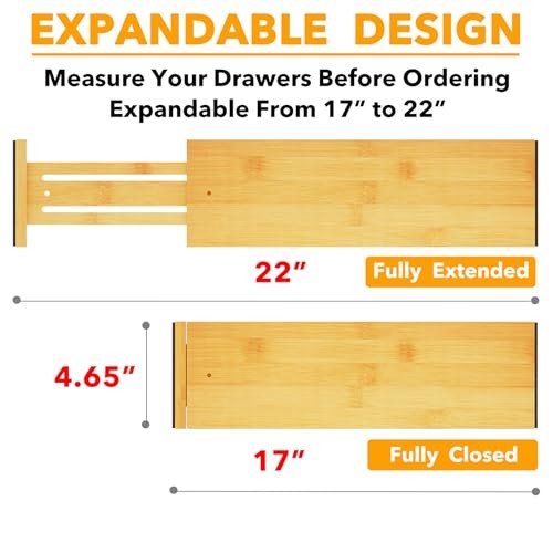 Return Policy Fast Delivery Trusted seller Bamboo Dresser Drawer Dividers 6 Pack, 4.65“ High Adjustable 17“-22” Drawer Organizers, Expandable Organization for Clothing, Clothes, Dressers, Natural Product Description 6 Drawer Dividers: Customize your dresser drawer with our dresser organizers; You can organize your clothes dresser with this 4.65 inches high drawer dividers 30 Label Stickers Included: Identify drawer contents instantly with this organizer label stickers set; Write directly on the label and stick it to the dividers; The preprinted arrow on the label helps you identify more efficiently Adjustable Expandable Organization: Each drawer divider is 4.65" wide, 0.6" thick and expandable from 17" to 22" in full length; Suitable for most drawers in your home, bedroom, bathroom, closet and office Drawer Dividers That Stay in Place: Strong spring-loaded design makes them sturdy dividers, with non-slip rubber pads in the end, keeping it stay put all the time and protect your drawers from scratches Easy Organization: Effortlessly sort clothing, accessories, office supplies, and kitchen utensils; Find what you need in seconds with our simple drawer organizers solution Shipping Returns Payment Shipping Shipping is FREE to all addresses other than APO/PO boxes in the lower 48 states. All our stock ships from US-based warehouses. Shipped via USPS or UPS (depending on location and package weight) Unless stated otherwise, all orders will ship within 24-72 hours of your payment being processed. Check our feedback to see the great reviews of FAST shipping we offer. Returns Seller does not accept returns Payment We currently accept payment via eBay managed payments only. Once payment is cleared, we will dispatch your shipment within 1-3 business days. Please refer to the "Shipping" tab for more information regarding shipping speed to your destination.