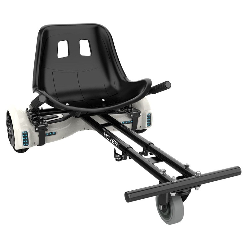 When you’re looking for a new type of ride, give our Kart a try. This exciting product magically turns your hoverboard into a fun and powerful buggy that can cruise along just as fast as your hoverboard but with an entirely new experience. Featuring a hand operated rear wheel control, and adjustable frame, and a quick-attach connection, Kart completely transform your hoverboard experience. “Travel at the speed of life. ” Hand-operation gives you full control of your riding experience Independent rear wheel drive allows for quick turns and reverse driving Adjustable frame length Adjustable straps to securely attach buggy to your Compatible with most Hoverboards with 6. 5” - 8. 5” tires Does not include hoverboard Dimensions (Overall): 30 Inches (H) x 18 Inches (W) x 20. 5 Inches (D) Weight: 12. 3 Pounds Holds up to: 264 Pounds Suggested Age: 15 Years and Up Assembly Details: Adult Assembly Required Material: Plastic, Metal
