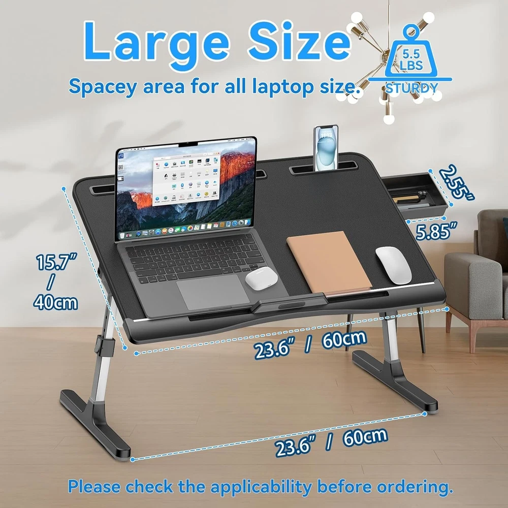 Versatile Laptop Bed Table – Extra Large Tray with Drawer for Reading & Working ‹ › ‹ › ‹ › ‹ › ‹ › ‹ › ‹ › ‹ › Versatile Laptop Bed Table Extra Large Tray with Drawer for Reading & Working Features: Soft PVC Leather Desktop: Comfortably covered with high-quality leather, providing a soft touch and an anti-slip effect to prevent your devices from sliding off. Waterproof & Stain-Resistant: The durable surface is designed to resist wear and helps to maintain its pristine appearance. Adjustable Height & Tilt: Customize your comfort with 5 height settings (9.45"-13.35") and 4 angle adjustments (0°-36°) for ideal ergonomic support. Extra Large & Wide Design: Spacious 23.6" x 15.7" surface area can easily accommodate a laptop, tablet, and mouse simultaneously, enhancing your productivity. Convenient Storage Drawer: Keep your essentials organized with a handy drawer, perfect for items like USB cables, pens, glasses, and more. Foldable & Portable: Featuring sturdy aluminum alloy legs that fold for easy storage and portability, allowing you to maximize space at home or on the go. Multifunctional Use: Ideal for various activities, whether as a laptop stand, couch table, writing desk, or dining table, this versatile unit adapts to your needs. Why choose our Versatile Laptop Bed Table? Upgrade your workspace with a perfect blend of comfort and functionality. Whether you're lounging on the sofa, nestled in bed, or on the go, this laptop bed table provides an ideal solution for your working needs. The stylish design and practical features make it a wonderful addition to your home office setup, while the adjustable height and tilt options cater to ergonomic needs. Perfect as a thoughtful gift for family and friends, this versatile desk will elevate the way you work and relax. Don’t settle for less; experience the pleasure of working in comfort. Order your Versatile Laptop Bed Table today! Shipping Free & Fast Shipping - We offer free shipping to most of the USA with a normal delivery time of 3-7 days. However, due to the current situation, additional delivery time (up to 3 weeks) may be required for some items. Alternative Carriers - We may use alternative carriers (e.g. USPS, FedEx, UPS, etc.) to ensure your package arrives safely and on time. Due to the use of multiple carriers, we are unable to provide a tracking number automatically. Handling Time - Orders are processed and shipped within 1-2 business days of receiving cleared payment. Shipping Restrictions - Shipping to Alaska, Hawaii, Puerto Rico, Guam, and other US territories may incur shipping charges or delivery restrictions. Please contact us before ordering, or your order can be refunded/cancelled. State Restrictions - There may be restrictions based on your state of purchase. For example, certain items may not be shipped to California due to state regulations. Contact for Tracking Updates - If you require tracking updates or have any concerns about the delivery of your order, please feel free to contact us, and we will be happy to assist you. Return 30-Day Hassle-Free Returns - We want you to be completely satisfied with your purchase. If you are not, you can return the item within 30 days of receiving it for a full refund or exchange. Easy Return Process - To start a return, simply contact us and we will provide you with a prepaid return shipping label and detailed instructions. Restocking Fee - There are no restocking fees for returns. However, the buyer is responsible for return shipping costs if the return is not due to a seller's error. Refund Processing Time - Refunds will be processed within 5 business days of receiving the returned item in its original condition. Payment We accept all major credit cards, PayPal, and Apple Pay for your convenience. Your payment information is secure and encrypted to ensure a safe and seamless transaction. Please complete your payment within 3 days of purchase to avoid any delays in shipping. Feedback Your feedback is extremely important to us. We strive to provide the best products and customer service possible. If you are satisfied with your purchase, please take a moment to leave us a positive review. If you have any concerns or issues with your order, please contact us before leaving negative feedback. We are committed to resolving any problems and ensuring your satisfaction. Contact Us If you have any questions or concerns, please feel free to reach out to our customer support team. You can contact us through the eBay messaging system. We are available Monday to Friday, 9:00 am to 5:00 pm EST, and we will do our best to respond to your inquiry within 24 hours. Buy it now and enjoy a pleasant shopping experience! UPC: Not Set Model: Not Set Unit Quantity: 5.8 Item Width: Not Set Item Height: Not Set Item Length: Not Set Features: Foldable,Adjustable Height,Tilt,Portable,Waterproof,Stain-resistant,Wear-resistant Compatible Brand: Not Set Compatible Laptop Size: 13 in Laptop,14 in Laptop,15 in Laptop,17 in Laptop Compatible Product Line: Universal Compatible Model: Not Set Brand: Unbranded Type: Laptop Stand/Riser Color: Black MPN: Not Set Unit Type: lb Material: PVC Country/Region of Manufacture: Not Set Manufacturer Warranty: Not Set