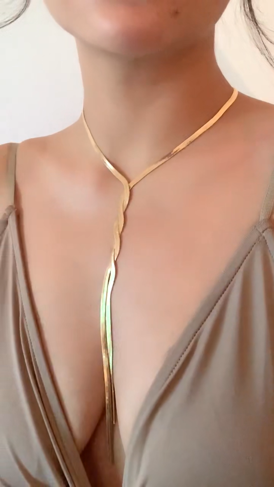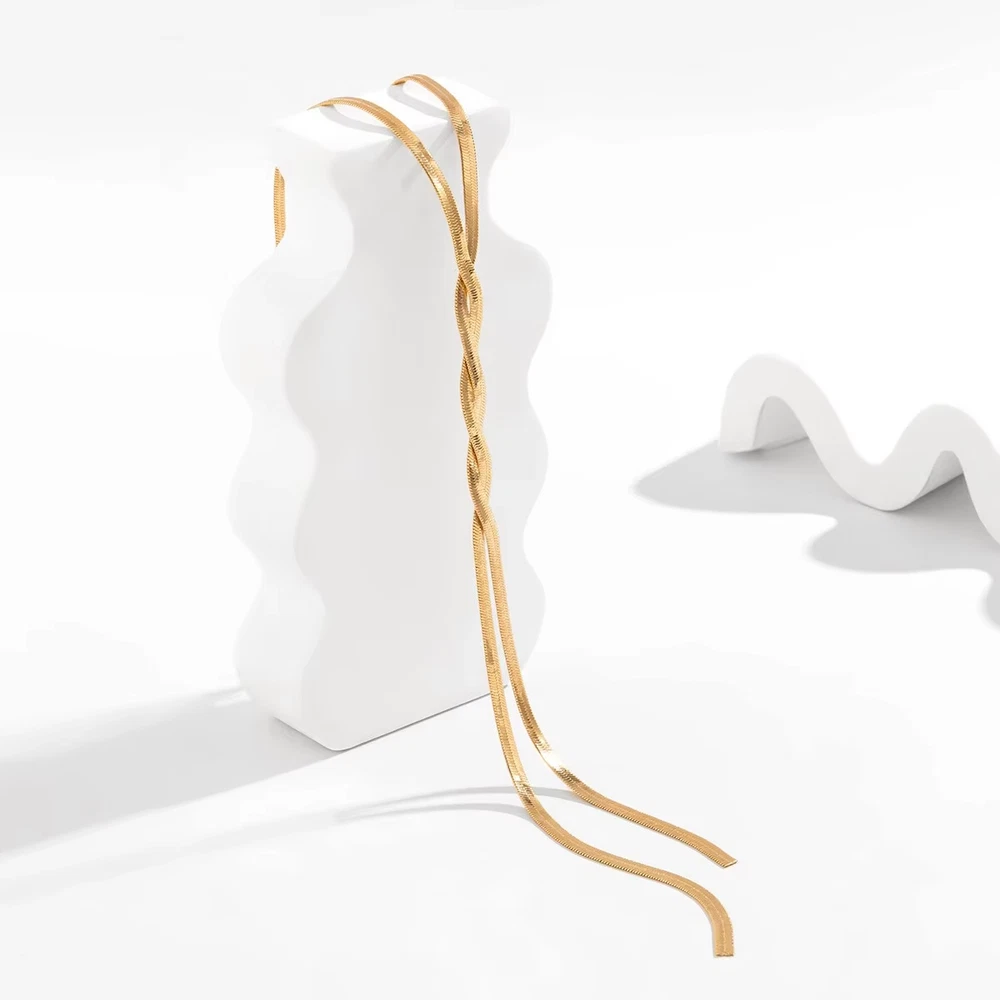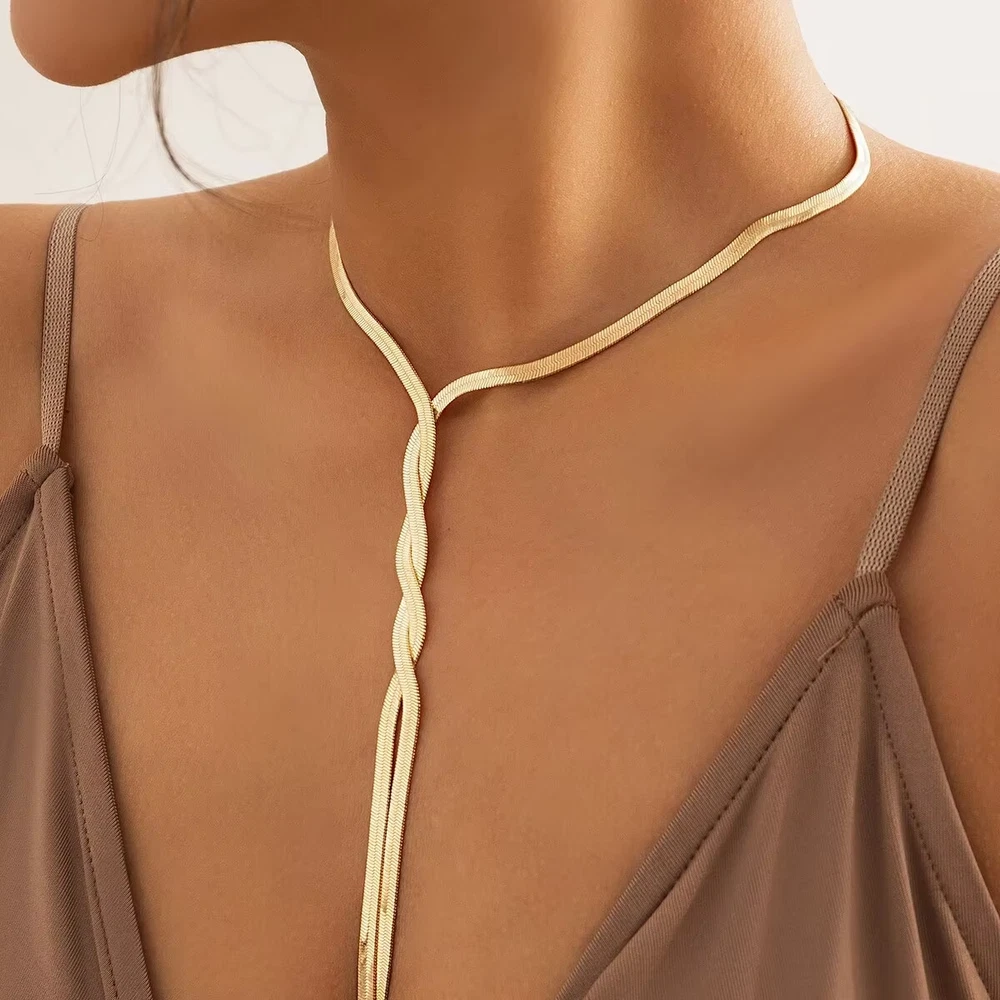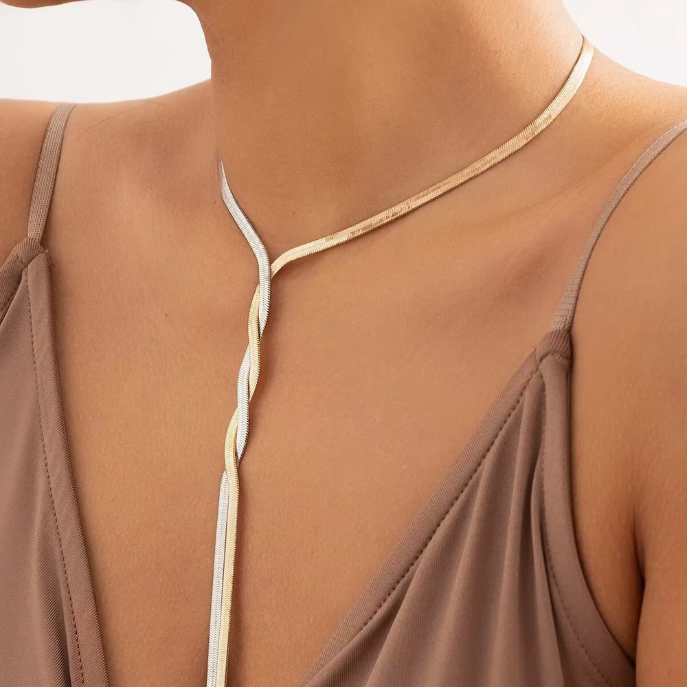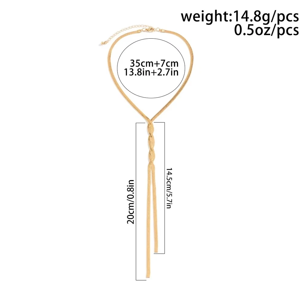 Crafted for versatility and style, this Adjustable Flat Snake Long Chain Necklace is a quintessential accessory for any fashion-forward wardrobe. The necklace features a unique twisted weave link chain, with a lobster clasp closure that ensures a secure fit. Its adjustable length offers a customisable experience, allowing you to wear it high or low to complement different outfits. With a copper base metal and no stones to detract from its sleek design, this piece is a blend of charm and punk, perfect for those who adore a touch of edgy elegance. It's an ideal choice for those who appreciate various styles, from choker to Y-drop, and it aligns with a multitude of themes, be it beauty, western, art, love, gothic, or hip hop. • Vintage Style : This necklace boasts a vintage style, perfect for those who appreciate retro fashion trends. • Adjustable Snake Chain : The adjustable snake chain allows for easy length modification, ensuring a comfortable fit for all. • Copper Material : Made from durable copper, this necklace is not only stylish but also resistant to corrosion and oxidation. • Geometric Pattern : The geometric pattern of the necklace adds a modern touch, making it a versatile piece that can be paired with various outfits. • Mood Tracker Function : This necklace also serves as a mood tracker, making it a fun and interactive accessory for fashion enthusiasts. • Wedding-Wear Compatible : Its stylish design makes it compatible for weddings, making it a great accessory for brides or guests. Item style: pendant necklace Condition: 100% Brand New Material: Copper Chain Color: Gold Color and Silver Color Size: As Picture Size Net Weight: 14.8g
