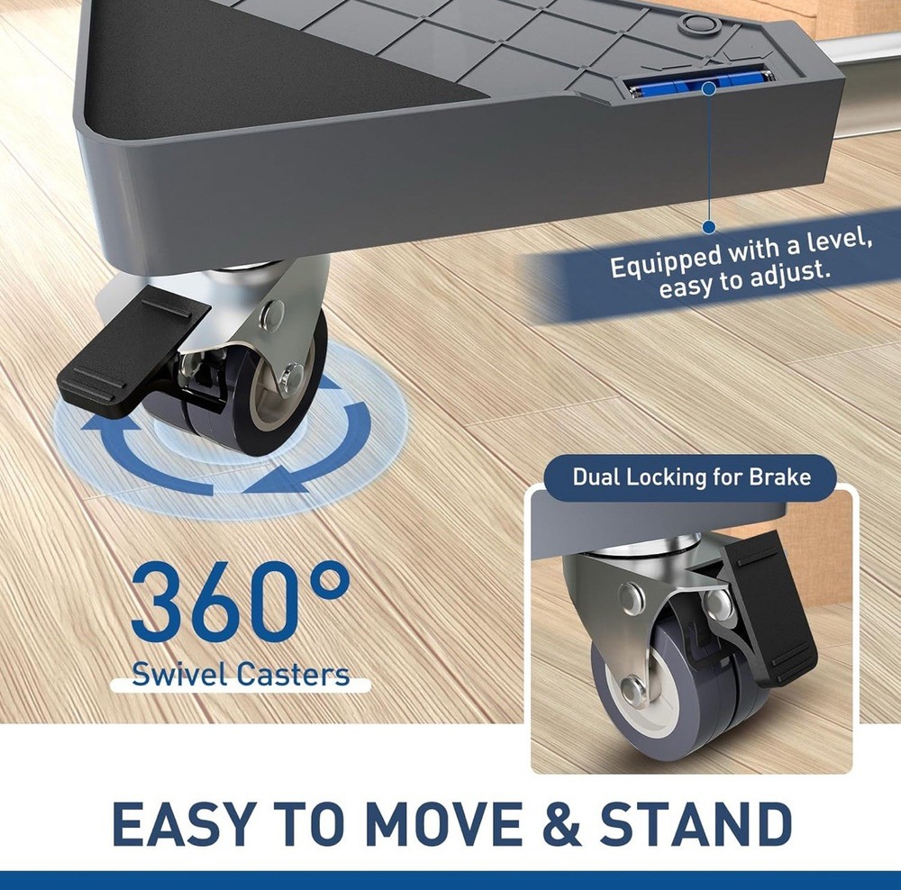 Move and stabilize your appliances with ease using the SPACECARE Mini Mobile Base Stand. This heavy-duty adjustable dolly is designed to fit mini fridges, washers, dryers, and other household appliances, providing smooth mobility and sturdy support. Equipped with 4 swivel wheels, all with locking mechanisms, it allows for easy movement and secure placement wherever you need it. The adjustable frame fits a variety of sizes, making it a perfect universal base for compact appliances. ⸻ ✅ Key Features: • Universal fit – Adjustable frame fits most mini refrigerators, washers, dryers, and more • Smooth-rolling wheels – 4 swivel casters for effortless mobility • Lockable design – All 4 wheels have locks to hold appliances in place securely • Heavy-duty support – Built to handle the weight of large appliances • Protects floors – Raises appliances off the floor to prevent moisture damage • Shock-absorbing pads – Reduce vibration and noise