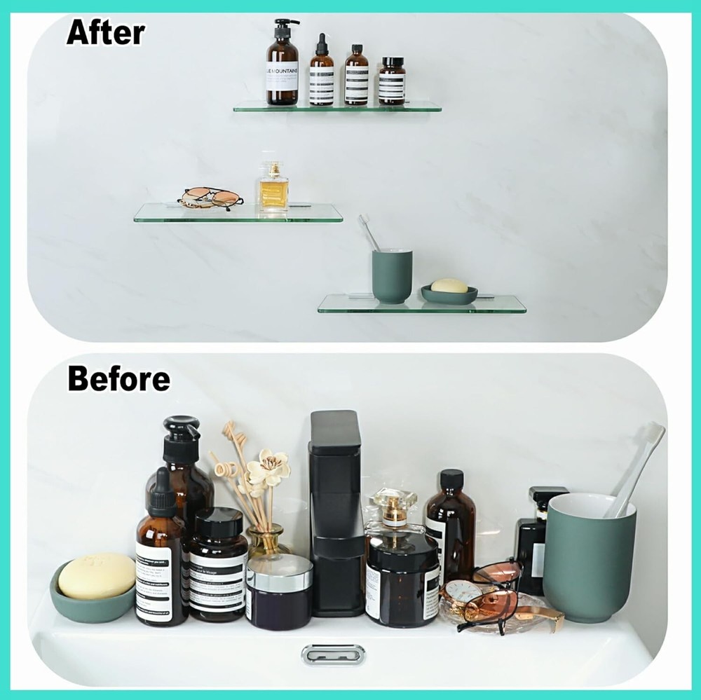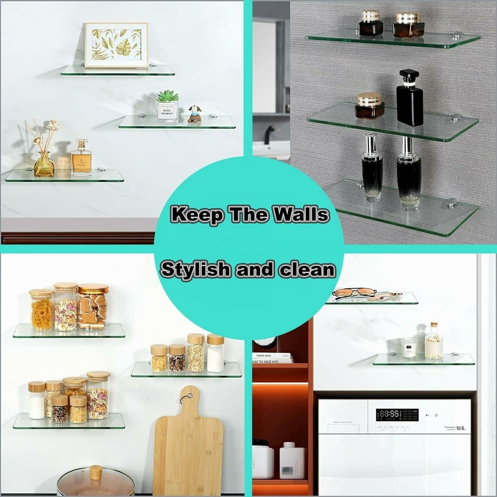 8Pcs Glass Shelf Brackets,Adjustable Clamp Brackets for Shelves,Wall Mount Clamps for 5-8mm Glass Shelves,Bathroom Clip Holder Support Hardware 【Quality Material】The glass clamp are made of high quality zinc alloy, able to resist daily corrosion and oxidation, ensuring durability and reliability. 【Nice Chrome Finish】The glass shelf brackets design is simple and stylish, hand-polished finish, smooth surface, not easy to scratch your hands. 【Thickened Design】The glass shelf bracket is designed with heavy duty thickened solid metal structure, Strong load-bearing force, not easy to break. 【Adjustable Design】You can use the screw to adjust within the adjustable range, suitable for 5-8mm thick glass. Note: Please measure the size of the product you need to install before ordering to avoid affecting your shopping experience. 【Easy to Install】The screw hardware required for glass clips installation is included, you can assemble it freely; Suitable for all kinds of glass, wood products, shelves, glass doors, shower doors, glass cabinets, wine cabinets and so on.